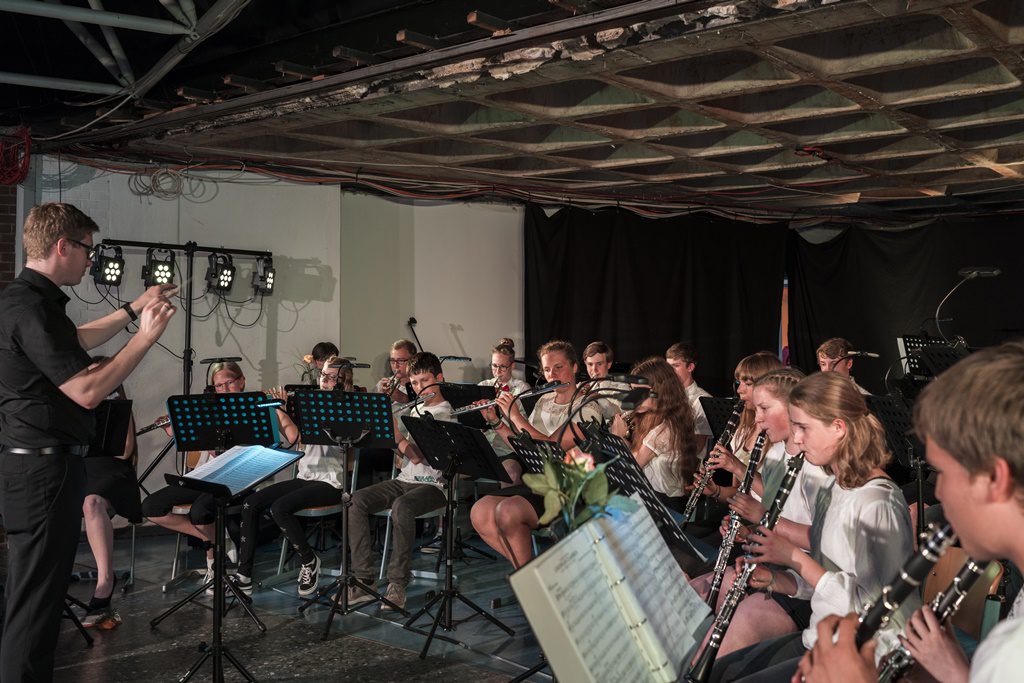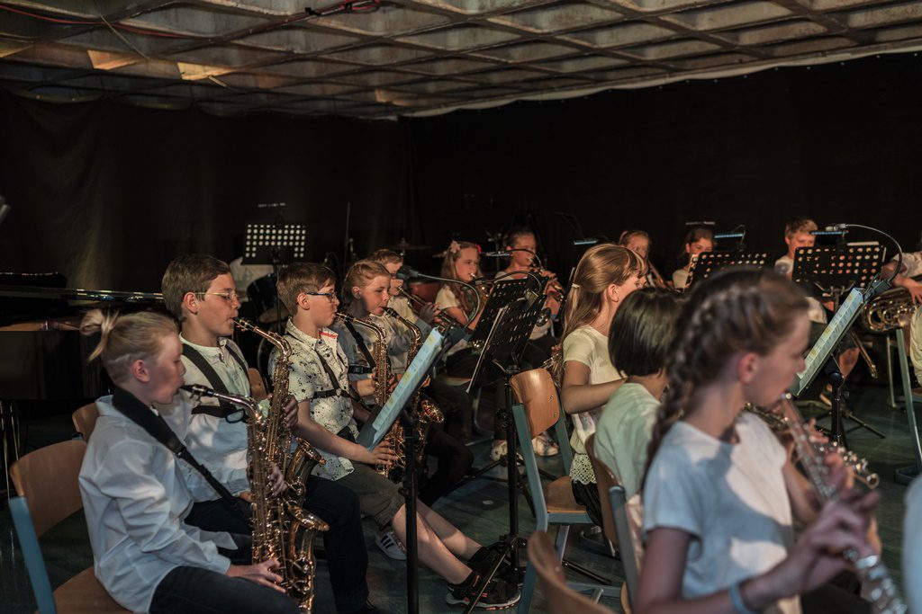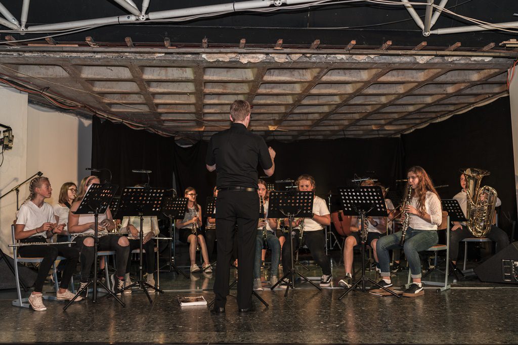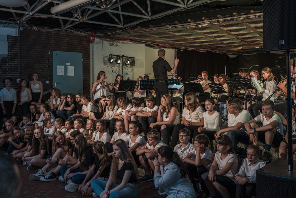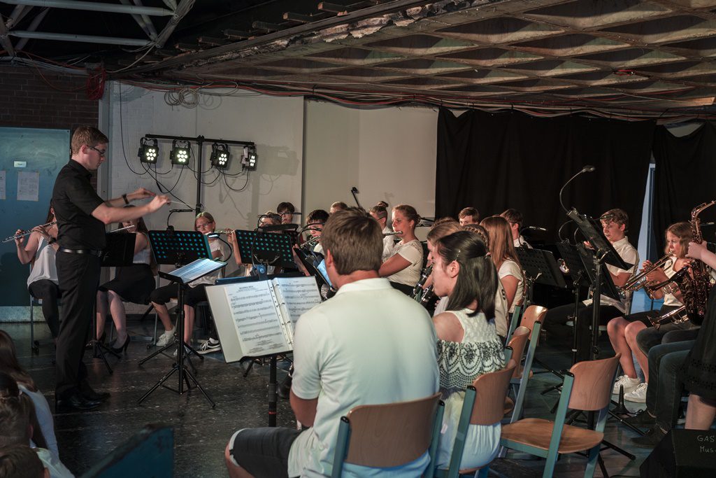 Die neue Bläserklasse 5, ebenfalls gecoached und dirigiert von Malte Gerlach, ließ sich dann auch nicht lange bitten, und überraschte nach nur einem knappen Jahr Lernzeit mit einem sicheren und klanglich beeindruckenden Vorspiel des Gospels Oh when the Saints und dem japanischen Volkslied Sakura, Sakura. Im Anschluss bewies die Bläserklasse 6 ihr gefestigtes Zusammenspiel mit der Bläserklassenhymne School Spirit, und traf mit hörbarer Musizierfreude den sommerlichen Nerv des Abends mit Camila Cabellos Havanna in einer Bearbeitung von Malte Gerlach.