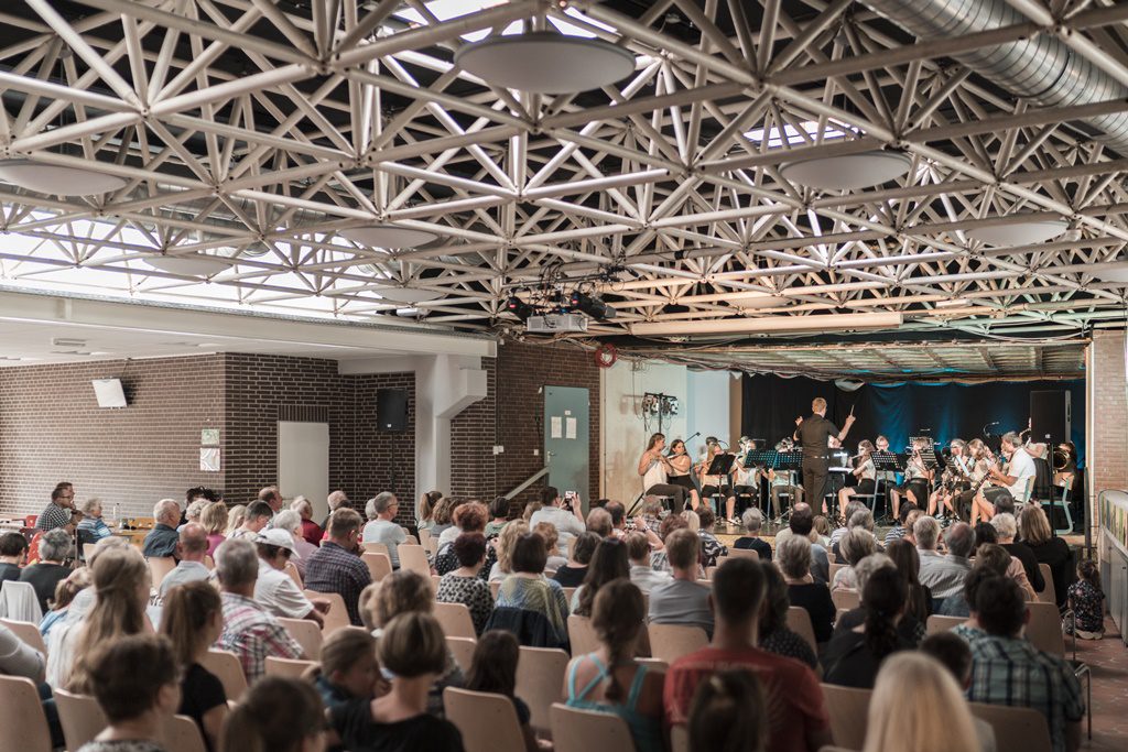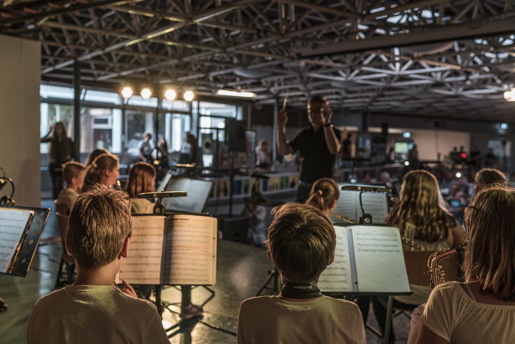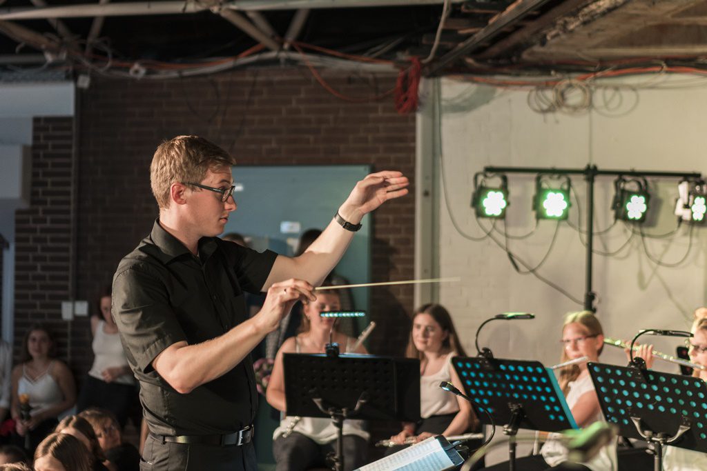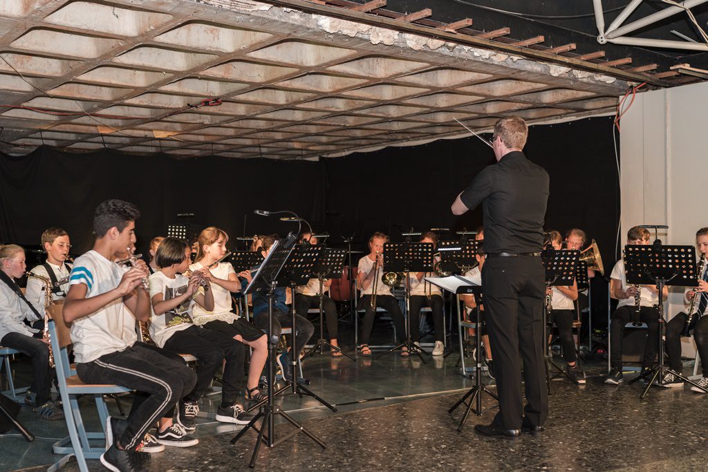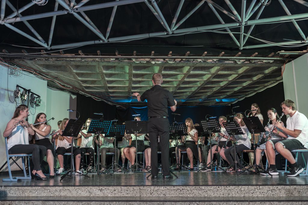 Die neue Bläserklasse 5, ebenfalls gecoached und dirigiert von Malte Gerlach, ließ sich dann auch nicht lange bitten, und überraschte nach nur einem knappen Jahr Lernzeit mit einem sicheren und klanglich beeindruckenden Vorspiel des Gospels Oh when the Saints und dem japanischen Volkslied Sakura, Sakura. Im Anschluss bewies die Bläserklasse 6 ihr gefestigtes Zusammenspiel mit der Bläserklassenhymne School Spirit, und traf mit hörbarer Musizierfreude den sommerlichen Nerv des Abends mit Camila Cabellos Havanna in einer Bearbeitung von Malte Gerlach.