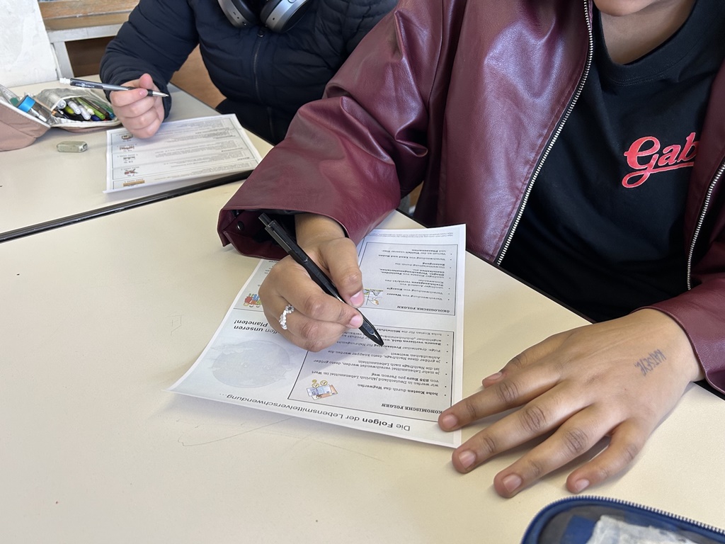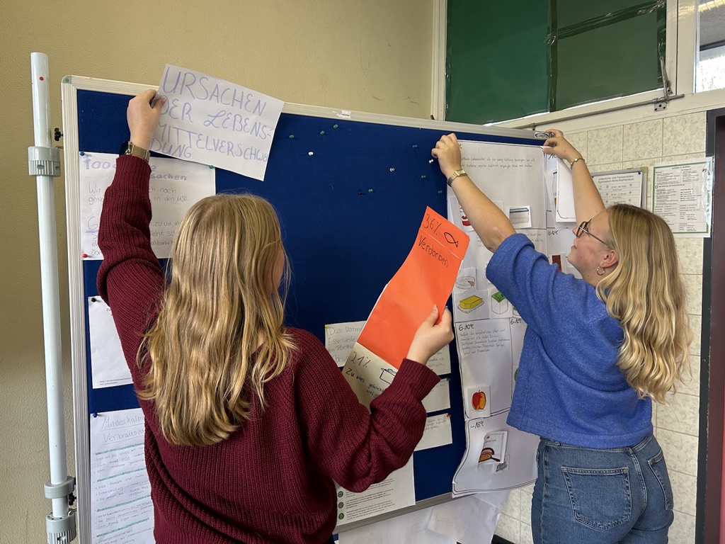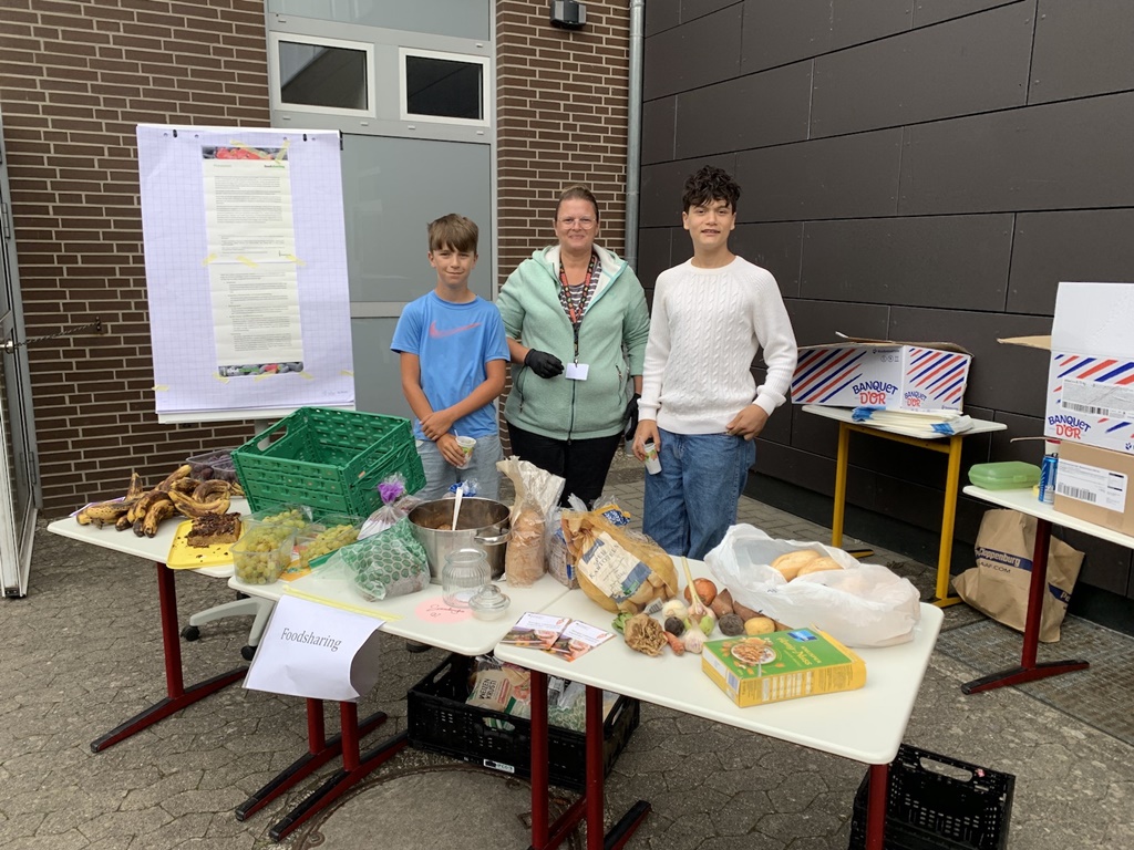 Nach einer Einführung ins Thema machte sich die Projektgruppe „foodsharing gegen Foodwaste – don’t let good food go bad“ daran, Ursachen und Folgen von Lebensmittelverschwendung zu erforschen. Schnell wurde klar: Noch immer werden jedes Jahr tonnenweise genießbare Lebensmittel weggeworfen – auch in Privathaushalten. „Dass zu Hause am meisten weggeworfen wird, hat mich schon erstaunt.“, sagt Davina Frank (Klasse 7). Malin Howorka (Klasse 9) ergänzt: „Durch das Projekt weiß ich jetzt, dass das nicht nur die Müllabfuhr und unsere Portemonnaies belastet. Auch die Menschen im Globalen Süden leiden unter den Auswirkungen der Lebensmittelverschwendung. Ihre Ressourcen wie Land und Wasser werden immer mehr für die globale Nahrungsmittelproduktion benötigt – zu oft auf Kosten des lokalen Nahrungsmittelanbaus und -verkaufs. Das ist nicht fair.“