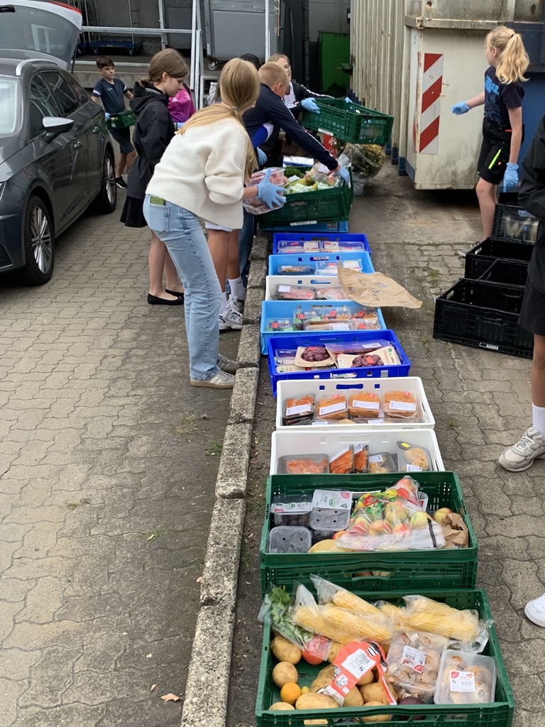 Es blieb jedoch nicht nur bei einer intensiven theoretischen Auseinandersetzung mit der Thematik, die Schülerinnen und Schüler beschäftigten sich auch ganz praktisch mit dem Thema. Ein besonderes Highlight waren die von Jennifer Winter von der foodsharing-Community Schöningen organisierten Lebensmittelabholungen bei örtlichen Supermärkten, bei denen die Schüler:innen Lebensmittel „retteten“, die sonst entsorgt worden wären. „Als wir die Lebensmittel abgeholt haben, war ich erschrocken, welche Menge da auf uns wartete – kein Müll, sondern essbare Lebensmittel!“, merkte Ulla Kiehne (Klasse 6) nachdenklich an. Hierbei handelt es sich vorrangig um Waren, die entweder abgelaufen oder für den Verkauf einfach nicht mehr gut genug sind.