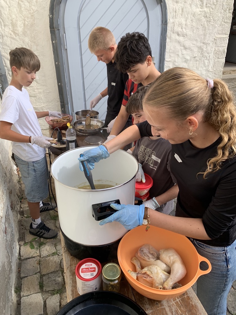 Aus diesen Lebensmitteln entstanden in den Räumen des Jugendfreizeitzentrums Schöningen köstliche Gerichte. Unter professioneller Leitung von Christine Tappiser (1. Vorsitzende der Landfrauen Schöningen) wurde in der „foodsaver-Küche“ geschnippelt, gekocht, gebacken und probiert. „Das gemeinsame Kochen war mein Highlight. Wir haben aus alten Brötchen Chips gemacht – die waren mega lecker!“, schwärmt Dennis Sauer (Klasse 8). Neben süßen Muffins, verschiedenen Crumbles und leckeren Smoothies stellten die Schüler:innen sogar eine Hühnersuppe her. „Ich hätte nie gedacht, dass man aus vermeintlichen Resten so kreative Gerichte zaubern kann. Jetzt sehe ich den Kühlschrank zu Hause ganz anders.“, stellte Anny Binroth fest (Klasse 9).