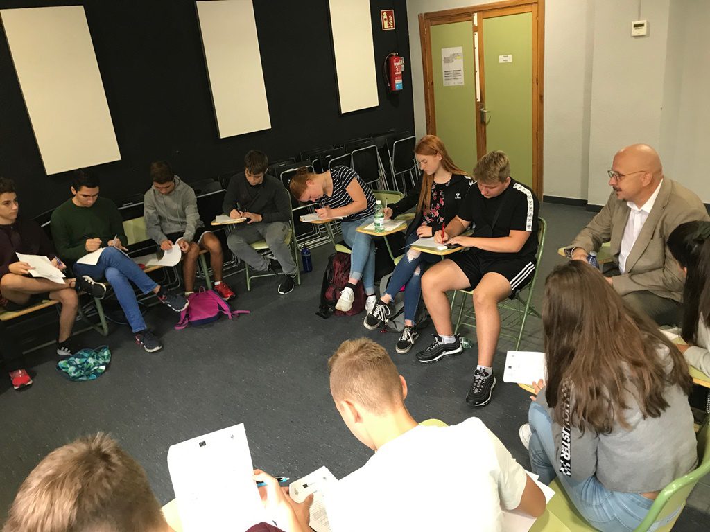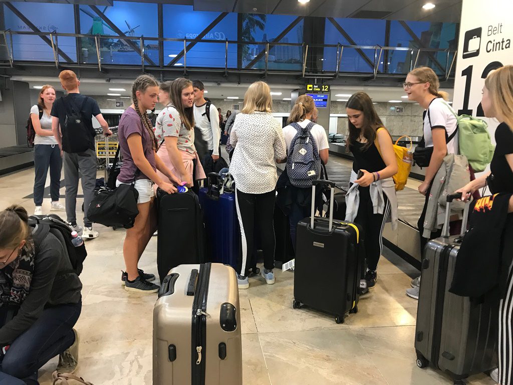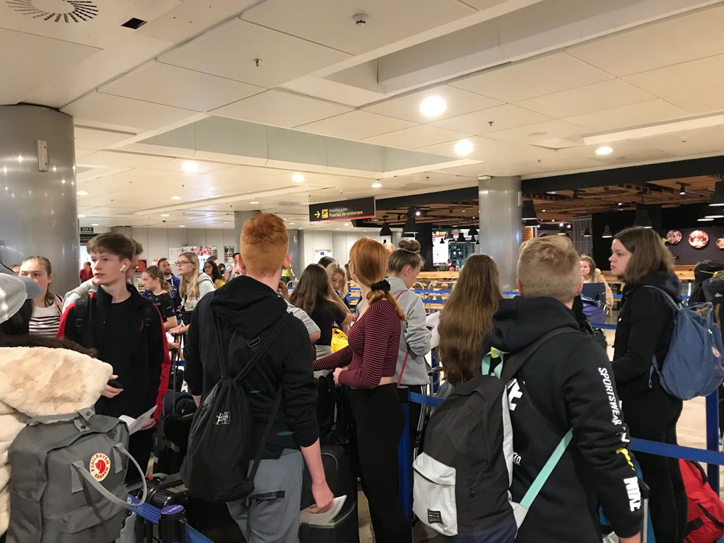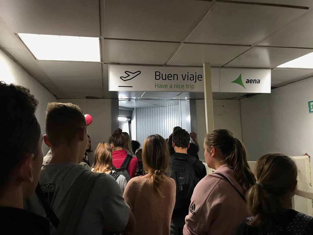 Der Tag startete früh: bereits um kurz vor 8:00 Uhr trafen wir uns am Hauptbahnhof in Braunschweig, um die Reise zum Hamburger Flughafen anzutreten. Dort trafen wir mit 30 Minuten Verspätung, aber dafür mit umso besserer Laune, ein. Wir checkten unsere Koffer ein und warteten anschließend auf unseren Flug. Gegen 19:00 Uhr kommen wir am Flughafen in Madrid an und wurden von Mercedes, einer Lehrerin der spanischen Schule, abgeholt. Nun dauerte es nicht mehr lang, bis wir das erste Mal auf unsere Austauschpartnerinnen und -partner trafen, die Spannung stieg! Nach nur ca. 20 Minuten Busfahrt kamen wir an der Schule in Coslada an und wurden sehr herzlich von den spanischen Familien empfangen. Nun konnten wir uns in den Gastfamilien nach der langen Reise endlich ein wenig ausruhen.