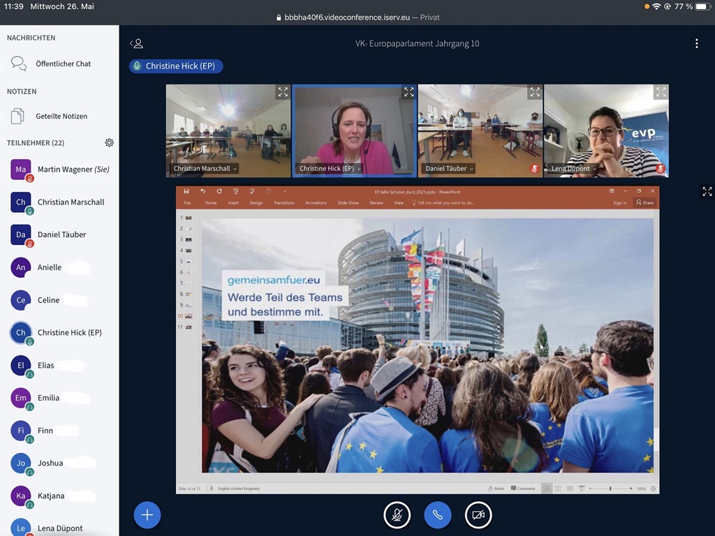 Ein Schwerpunkt der Diskussionen lag klar beim Themengebiet „Umweltschutz und Klimawandel“. Die herausgearbeiteten Lösungsvorschläge wurden am Ende einigen Abgeordneten aus dem Europa-Parlament präsentiert, was zu interessanten Gesprächen und Diskussionen führte. Insgesamt war es ein erkenntnisreicher Austausch sowie eine Anregung zu einem zukünftigen Nachdenken und Weiterdiskutieren zu den jeweiligen Themen.