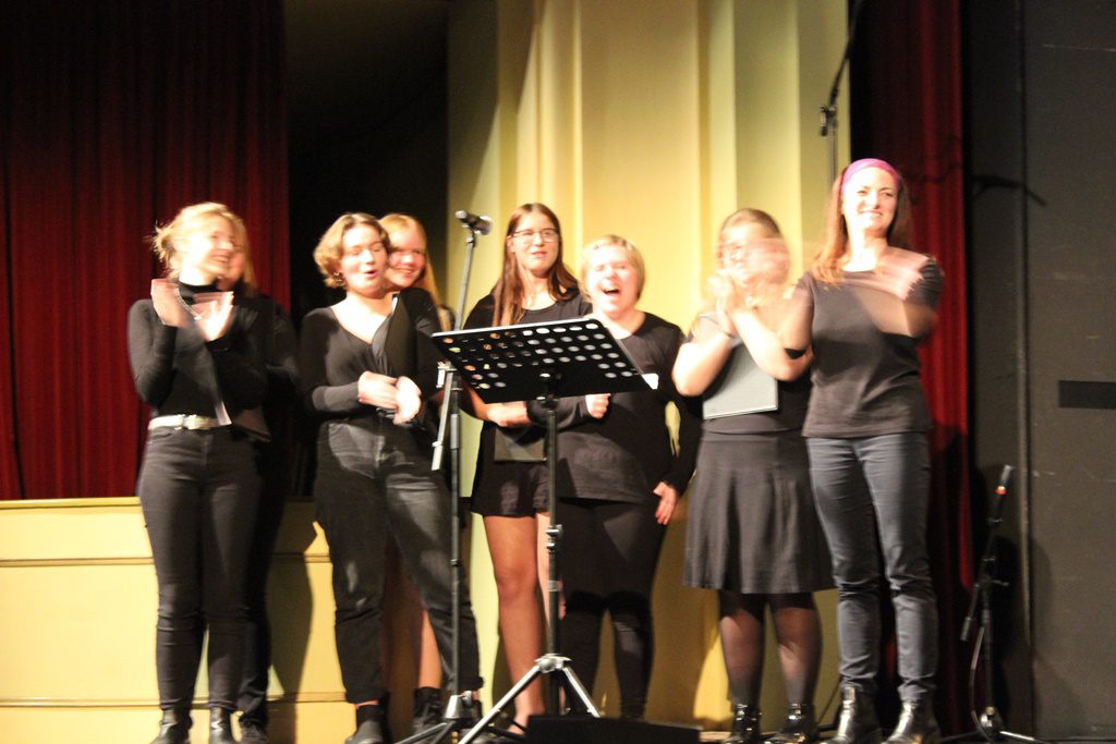 Im Anschluss präsentierte der Schulchor unter der Leitung von Frau Lobach ein vielseitiges Programm, das vom Kanon bis zum Disney-Medley reichte. Begleitet wurde der Chor von Emma Stern (10a), die ein Stück sogar selbst am Klavier arrangiert hatte.