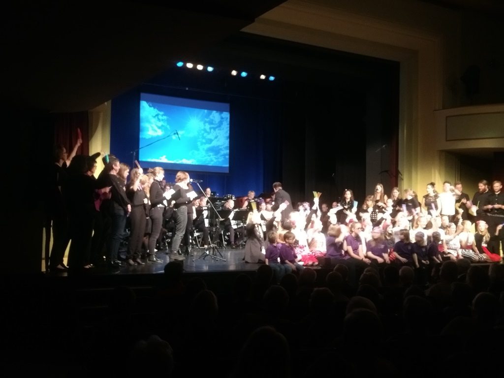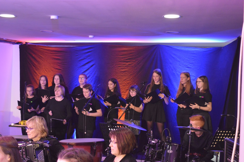 Mit dem bekannten Thema aus „Mission: Impossible“ zeigte das Orchester schließlich nochmals seine technische Vielseitigkeit, bevor zum Finale alle Ensembles gemeinsam auf die Bühne traten. Bei „Always Look on the Bright Side of Life“ sangen und spielten Chor, Band, Orchester, Bläserklassen vereint auf der Bühne. Ein optimistischer Abschluss, der das Motto des Abends auf den Punkt brachte.