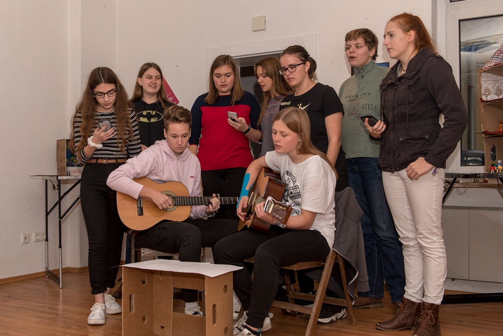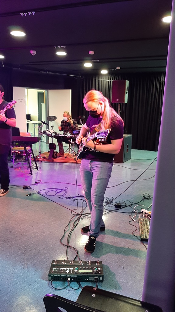 Die Band-AG hat sich bei den Probentagen auf sechs neue Songs geeinigt und konnte diese am Ende der Probentage schon vorzeigbar vortragen. Unter anderem wurde beispielsweise ein Popsong in ein Rock/Metalarrangement umgesetzt. Neben den intensiven Proben gab es zum Ausklang auch einen entspannten Filmabend, der auch das Thema Band betraf und den Werdegang einer fiktiven skandinavischen Metalband humoristisch aufgriff.