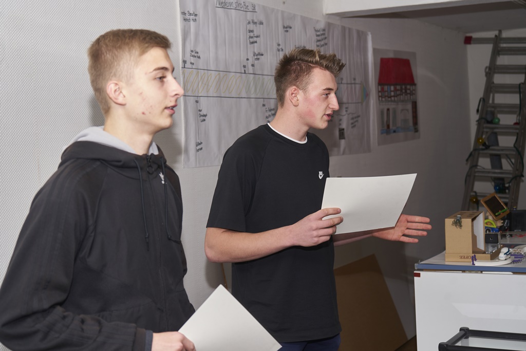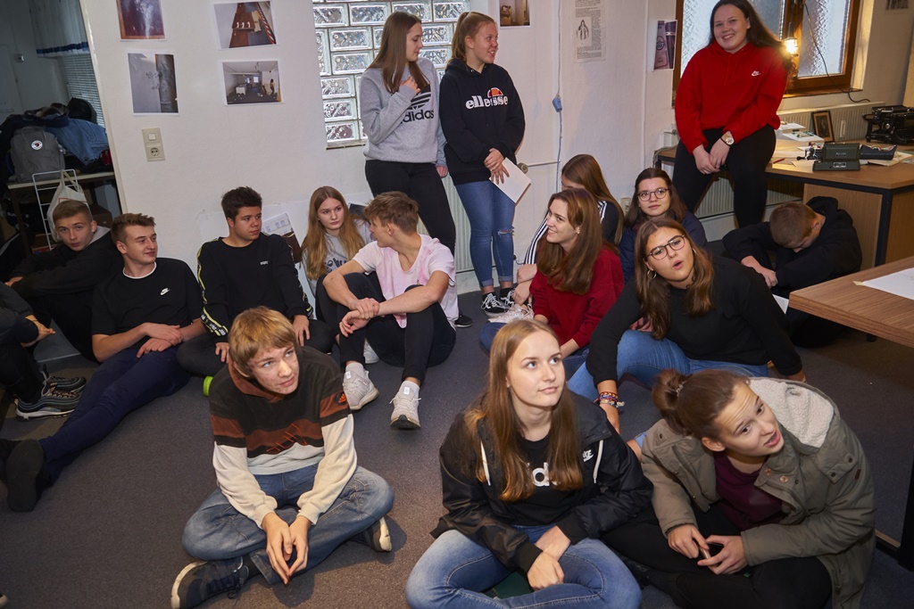 Am Morgen starteten die Schülerinnen und Schüler gemeinsam mit ihren Lehrkräften mit dem Bus von Schöningen aus Richtung Harz. Nach der Ankunft im Theater erhielten sie zunächst eine Einführung in das Stück und erfuhren dabei, dass das Musical vor etwa 10 Jahren in Anlehnung an den gleichnamigen Schwarz-Weiß-Film mit Hans Albers und Heinz Rühmann entstanden ist. Der Chefdramaturg des Theaters in Halberstadt Marco Misgaiski beantwortete die Fragen der Jugendlichen und teilte ihnen mit, dass die beiden Hauptdarstellerinnen freischaffende Musicaldarstellerinnen sind, die nur ausgewählt wurden, weil sie steppen können. Dies war eine Voraussetzung für die Rolle. Zudem überraschte die Schülerinnen und Schüler, dass am Theater in Halberstadt ca. 160 Personen fest angestellt sind. Natürlich hatten sie im Musikunterricht bereits die Merkmale eines Musicals und die verschiedenen Berufe, die an einem Theater zusammenarbeiten, gelernt. Dennoch waren einige überrascht, dass man am Theater eine Ausbildung als Bühnentechniker oder Schneider/in machen kann.