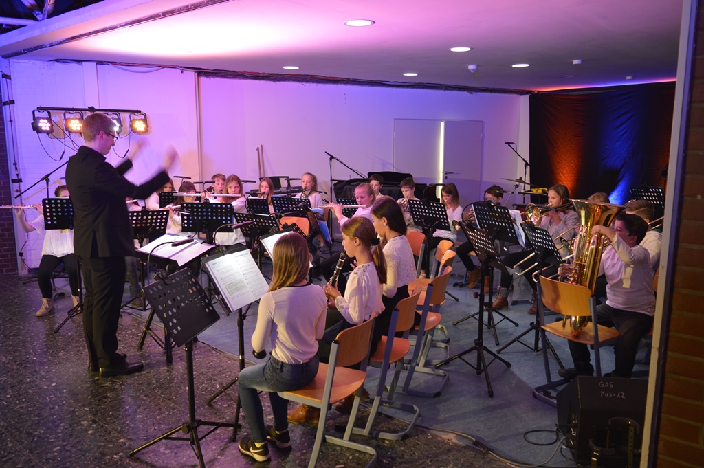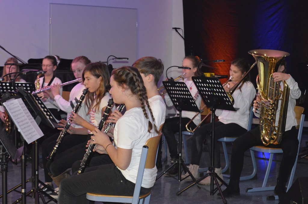 Denn viele der jungen Musikerinnen und Musiker im Orchester haben ihren Weg in der Bläserklasse 5 begonnen, die direkt im Anschluss auf der Bühne stand. Trotz aller Aufregung überzeugten die Jüngsten mit mehrstimmigem Spiel und spürbarer Freude am gemeinsamen Musizieren. Hier wurde deutlich: Mit Geduld, Durchhaltevermögen und Teamarbeit ist musikalisches Wachstum in kurzer Zeit möglich.