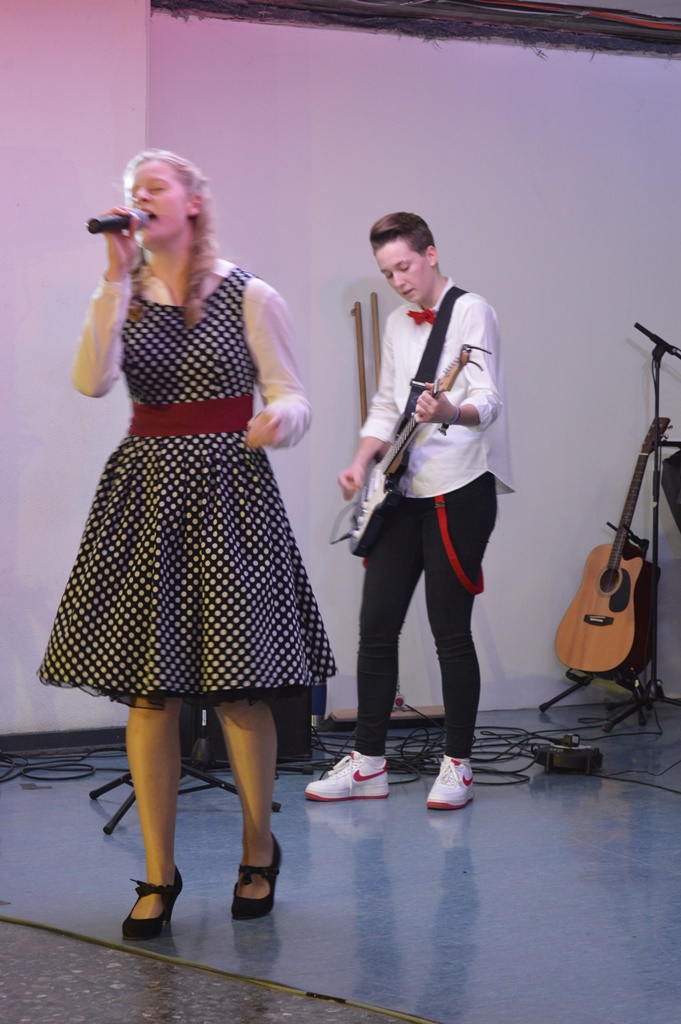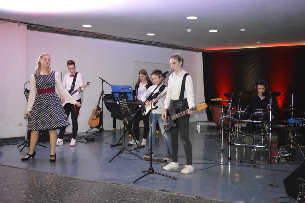 Die Schulband unter der Leitung von Herrn Wroblewski überzeugte mit einem kraftvollen, rockigen Set und zeigte eindrucksvoll, wie vielseitig Musik an unserer Schule gelebt wird. Ein besonderes Highlight war die Hard-Rock-Version von Lady Gagas „Bad Romance“, die bei der begeisterten Schüler-Fanbase für lautstarken Applaus und eine verdiente Zugabe sorgte.