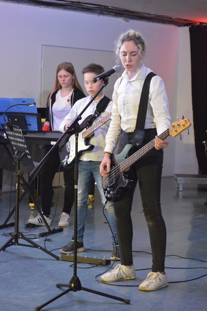 Einen modernen Akzent setzte die Schulband unter der Leitung von Philipp Wroblewski, die das Publikum mit energiegeladenen Interpretationen von Klassikern von „The Cranberries“ und „Nirvana“ begeisterte. In der Konzertpause hatten die Zuschauer die Gelegenheit, sich an der „Essbar“ unter der Leitung von Julia Ostermeyer mit Snacks und Getränken zu stärken oder am Stand der von Nike Gennrich geleiteten Kreativ-AG handgefertigte Weihnachtsgeschenke zu erwerben.
