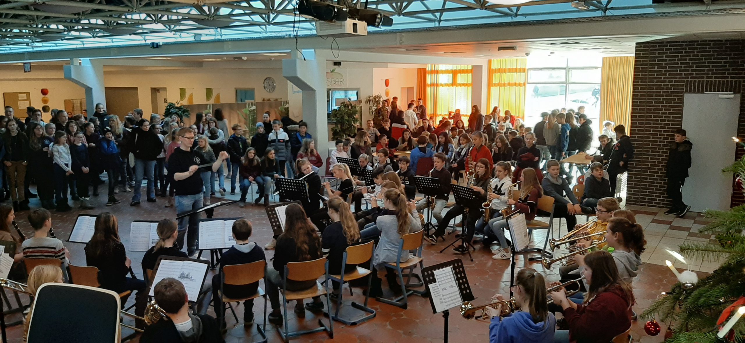 Die Fachgruppe Musik lädt am Do, 12.12.2024 um 17 Uhr herzlich zum Winterkonzert in die Pausenhalle ein. Dabei werden die beiden Bläserklassen, das Orchester, der Chor und die Schulband stilistisch vielfältige Musikstücke von beliebten Weihnachtsliedern bis zu modernen Songs zu Gehör bringen. In der Pause versorgt Sie die Cafeteria mit Getränken und Snacks. Die KreativAG bietet vor dem Konzert und in der Pause Selbstgebasteltes zum Verkauf an. Der Eintritt zum Winterkonzert ist frei.