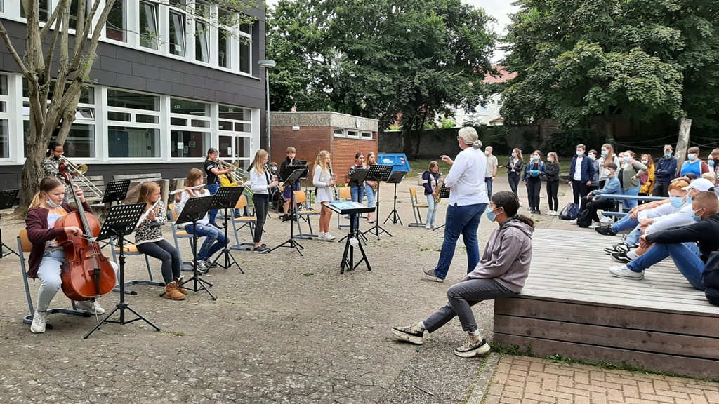 Die Musikensembles des Gymnasium Anna-Sophianeum Schöningen nahmen am Sonntag, den 28. Mai 2024 am Europafest der Vielfalt in Schöppenstedt teil. Dafür hatten das Orchester und die Bläserklassen in Rekordzeit extra die Europahymne einstudiert, die dann auch mit den Gästen vor Ort gesungen wurde. Das Orchester präsentierte noch weitere Stücke, die auch in unserem Sommerkonzert zu hören sein werden. Unsere Schulband hatte ein ganzstündiges Programm vorbereitet und beschallte den Marktplatz in beeindruckender Weise mit ihrer Lieblingshits aus Rock und Metal.