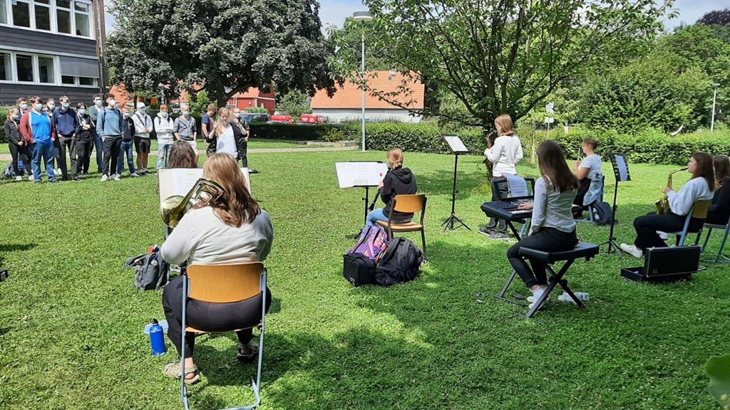 Neben dem musikalischen Programm wäre auch das diesjährige Sommerkonzertkonzert ohne die vielen Helfenden im Hintergrund nicht möglich gewesen. Ein großer Dank geht an die Veranstaltungs-AG, den Schulsanitätsdienst, die Essbar mit ihrem Catering-Team, die Instrumentallehrkräfte der Kreismusikschule, die als wichtige Kooperationspartner unsere Schülerinnen und Schüler fachkundig begleiten sowie in besonderer Weise unsere Ensembleleiterinnen und -leiter, die unsere Schülerinnen und Schüler über viele Schuljahre hinweg motivieren und fördern. Sie alle tragen dazu bei, dass solch ein Konzert in professioneller und fröhlicher Atmosphäre stattfinden kann – mit Routine, Flexibilität und vor allem: echtem Teamgeist.