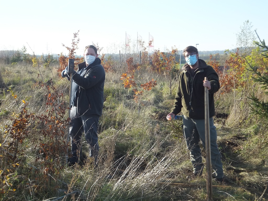 Die Vorbereitung der Pflanzareale erfolgte am Samstag, den 7.11.2020. Mit von der Partie waren Ulrike Anspach-Wolf, Sebastian Pach, Martin Wagener, Daniel Täuber, Lars Hosse und Jan Kiehne sowie die Schülerinnen Pandora Berg und Carlotta Werk. Ein ganz besonderer Dank geht natürlich an die Mitarbeiterinnen und Mitarbeiter der Stiftung Zukunft Wald und der Niedersächsischen Landesforsten, die durch ihr Fachwissen und das technische Gerät die Vorbereitungsaktion erst haben möglich werden lassen.