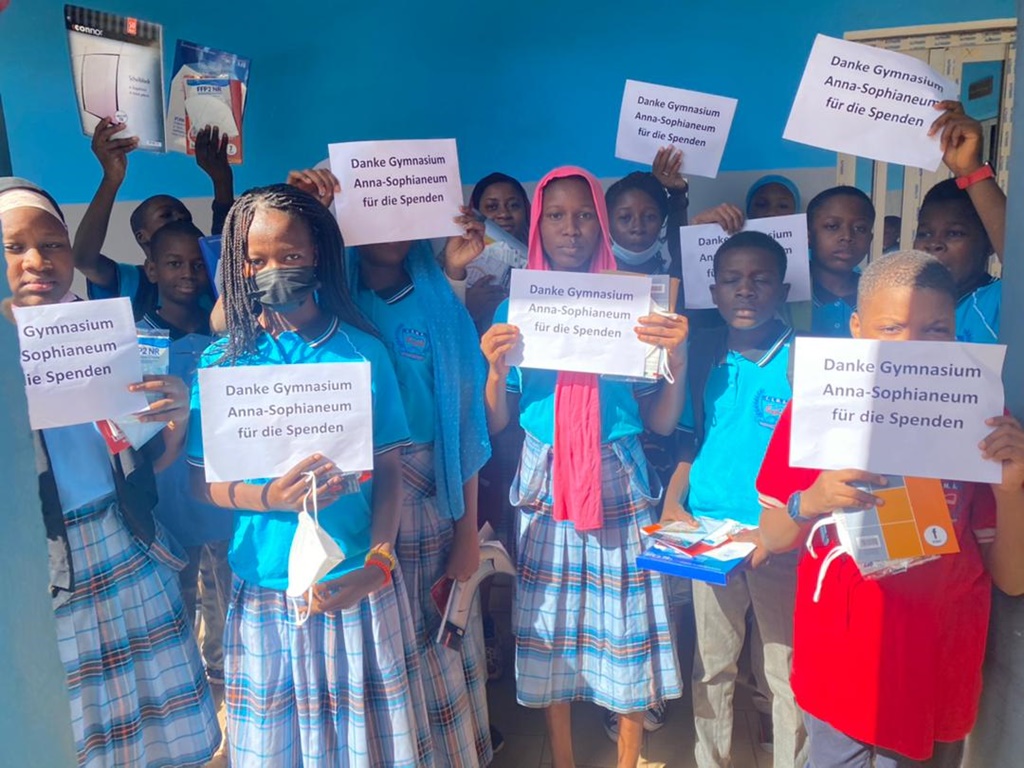 Bamako: Mit großer Freude und Dankbarkeit erreichten die Schüler der Complexe Scolaire Moderne Adiara (C.S.M.A.) vier Pakete vom Anna-Sophianeum. Im Zuge des Auf- und Ausbaus der Schulpartnerschaft zwischen dem C.S.M.A. und dem Anna-Sophianeum wurden bislang nicht nur Briefe hin und her geschickt, sondern es konnte vor dem Hintergrund der schwierigen Lebenssituation in Mali auch ein kleines Hilfsprojekt an unserer Schule realisiert werden. Dazu fanden sich Anny Hollmichel, Emelie Fiedler, Neslihan Akdemir, Anton Korchev, Jolina Junge, Jonte Kaletka, Jette Raebel, Jonas Murche, Aaron Alzer, Hasan Köker, Lena Fricke und Annet Brüning aus der Q2 zusammen. Gemeinsam mit Herrn Wagener organisierten sie einen Weihnachtsgebäckverkauf. Nach einem sehr guten Verkaufsstart in der Vorweihnachtszeit musste die Aktion leider aufgrund strengerer Hygieneauflagen im Zuge von Corona beendet werden. Es kamen aber insgesamt und dank einiger zusätzlicher Spenden rund 180 Euro zusammen. Der Erlös wurde dann für den Versand der vier Pakete sowie der Anschaffung von Schulmaterial und Corona-Schutzmasken verwendet. Die Pakete konnten noch vor Weihnachten versendet werden und erreichten trotz einiger Schwierigkeiten Mitte Januar unsere Partnerschule in Bamako. „Die Freude der Kinder war sehr groß. Die Masken und das schulmaterial werden dringend gebraucht“, so der malische Kollege Herr Mamadou Thiam. Schulmaterial ist für viele Kinder nur schwer zu erwerben und auch der Schutz vor Corona und anderen Infektionskrankheiten ist oft nicht oder nur schwer möglich. Wir freuen uns, dass wir einen bescheidenen Beitrag zur Unterstützung der Schüler/Innen leisten konnten und hoffen auch weiterhin auf einen partnerschaftlichen Austausch und viele weitere gemeinsame Projekte.