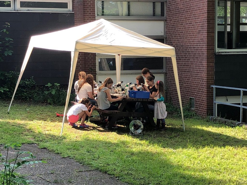 Bei angenehmem Wetter fand vom 24.5.2019 bis 25.5.2019 die dritte Forschernacht am Anna-Sophianeum statt. Nach dem Aufbau des Forschercamps im Schulgarten und der Einrichtung der Arbeitsmaterialien wurde in diesem Jahr die Teichfauna mikroskopiert. Weiterhin wurden Brennnesseln gesammelt. Vielen gilt diese gesunde und nahrhafte Pflanze ja als Unkraut. Deshalb war es dieses Jahr den Lehrkräften ein wichtiges Anliegen, die kulinarische Bedeutung dieser oft verschmähten Pflanze herauszustellen. Zudem konnte das mit Spendengeldern des ESUV erworbene Gewächshaus errichtet werden. Es soll künftig den Schülern die Möglichkeit bieten, das Pflanzenwachstum hautnah zu erleben und zu untersuchen. Am Abend wurde gegrillt und dazu gab es wieder erntefrischen Salat aus dem Schulgarten sowie frisch zubereitete Brennnesselsuppe. Ein besonderes Highlight am späten Abend war dann noch das Lagerfeuer bei knusprigen Marshmallows und Stockbrot. Die Forschernacht endete mit einem leckeren Frühstück am Samstagmorgen, bei dem wir uns den zuvor zubereiteten Brennnesselfrischkäse schmecken ließen.
