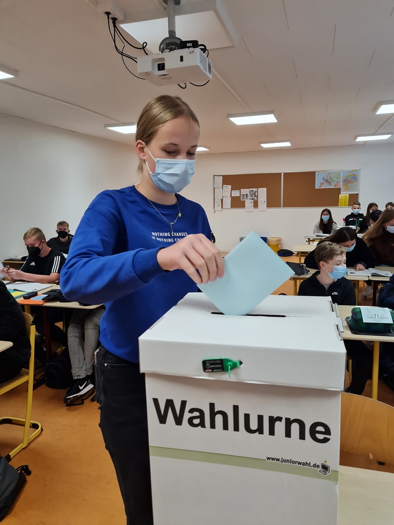 In der Woche vom 20.09.-24.09.2021 gaben am Gymnasium Anna-Sophianeum Schöningen insgesamt 326 Schülerinnen und Schüler des 9. bis 13. Jahrgangs im Rahmen der Juniorwahl ihre Stimmen ab. Dies entsprach einer Wahlbeteiligung von 90,81%.