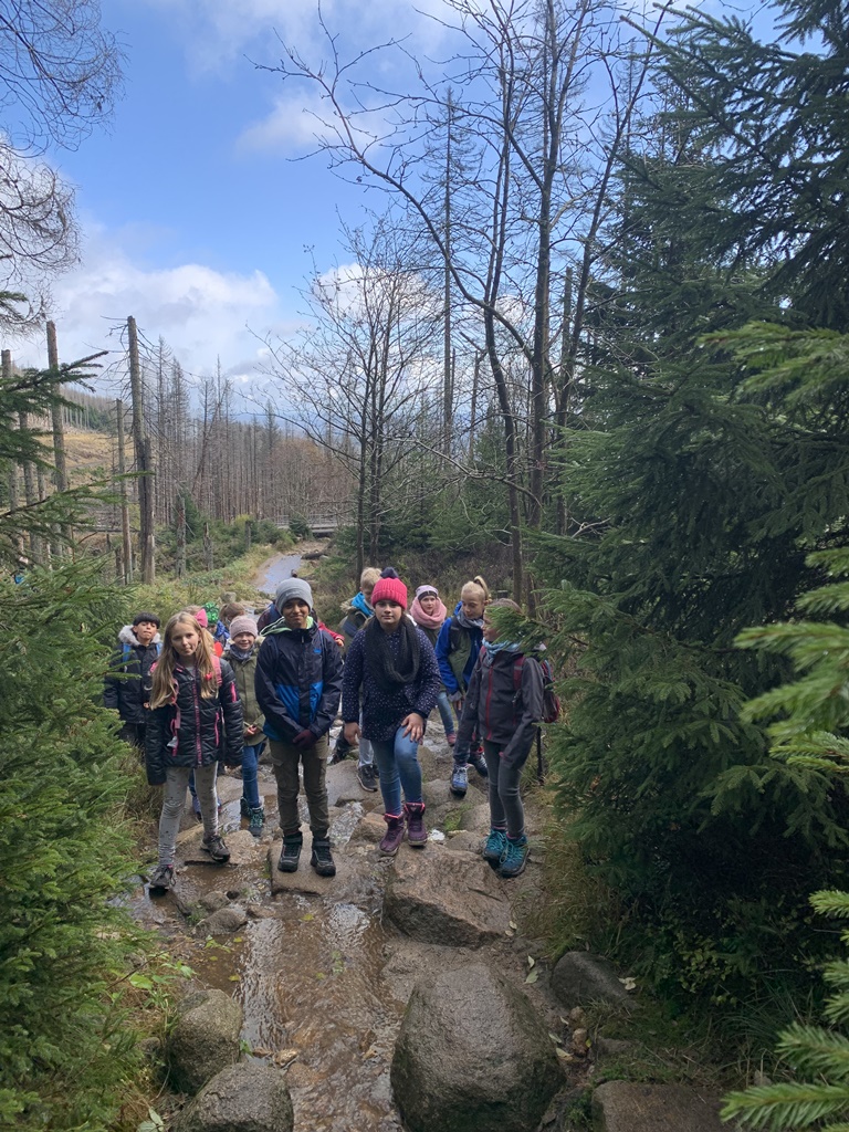 Am Dienstag, den 12.10.21, wollten wir eine geführte Brockenwanderung machen. Dafür kam ein Ranger, der die Führung leiten sollte und uns viel über den Brocken und seine Natur erzählt hat. Aber leider war es total stürmisch und regnerisch. Erst waren wir nur in der Nähe der Jugendherberge, aber uns wurde leider sehr kalt. So haben wir uns einer Stunde wieder auf den Zimmern aufgewärmt. Als am Nachmittag die Sonne rauskam, sind wir dann doch noch auf den Brocken gewandert. Das war ein Abenteuer, wir mussten über Stock und Stein. Sogar gehagelt hat es zwischendurch. Auf dem Gipfel war es total kalt und neblig, so dass wir uns bei einem heißen Kakao erst einmal aufgewärmt haben. Anschließend ging es dann wieder runter zur Jugendherberge. Dort haben wir warm geduscht und zu Abend gegessen. Abends haben wir dann noch eine Runde Werwölfe gespielt und dann fix und fertig ins Bett gefallen. Was für ein Tag!