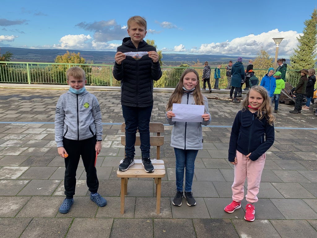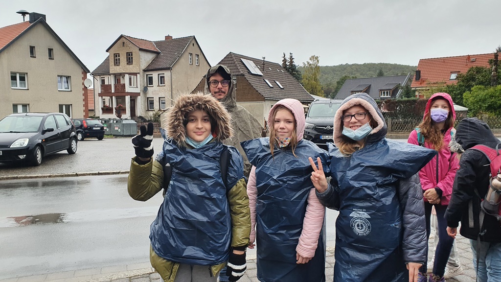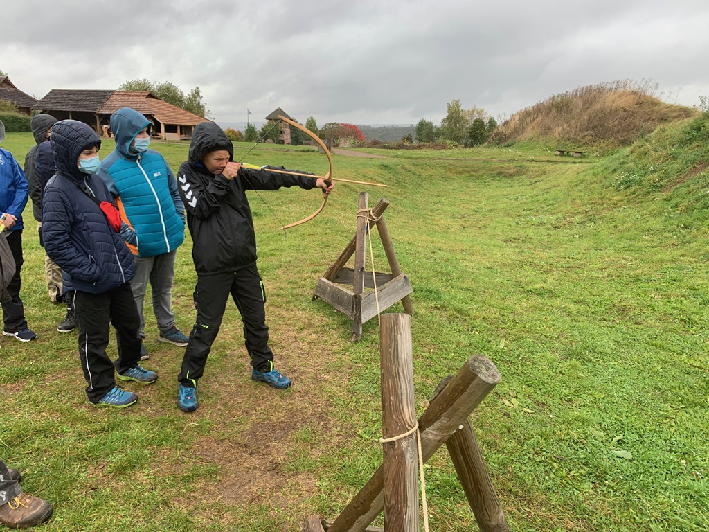 Nach unserer ersten Nacht fernab unserer Eltern machten wir uns nach dem Frühstück bei leichtem Nieselregen auf den Weg in den benachbarten Ort Tilleda. Dort besuchten wir das heutige Freilichtmuseum, welches früher eine Pfalzanlage war. Eine Königs- bzw. Kaiserpfalz war der Verwaltungssitz des Herrschers im Mittelalter. Dort machte der Kaiser Station, wenn er sein Herrschaftsgebiet durchreiste. Oftmals kam er mit einer Gefolgschaft von mehr als 1000 Leuten. Im Freilichtmuseum machten wir eine Rallye und konnten mit Pfeil und Bogen schießen. Einige von uns gewannen sogar Medaillen. Im Anschluss liefen wir im strömenden Regen zurück in die Jugendherberge, wo wir uns erst einmal trockenlegen mussten. Am Nachmittag spielten wir Spiele, dabei mussten wir unter anderem ein rohes Ei, welches von uns vorher mit vorgegebenen Materialien geschützt werden konnte, aus einer Höhe von zwei Metern fallen lassen. Fast alle Eier haben ihren Sturzflug überlebt. Am besten Schnitt dabei das Exponat „Bruchpilot 1000“ ab. Nach dem Abendbrot spielten wir das Werwolfspiel gemeinsam.