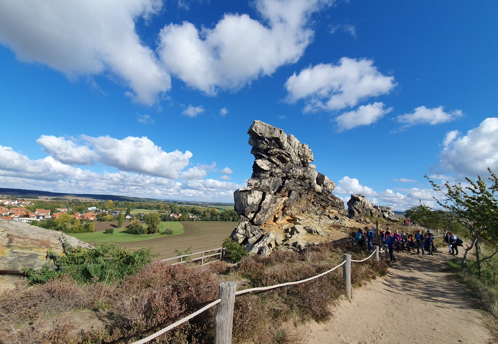 Nach dem Mittagessen ging es schon auf die erste Erkundungstour. Der Weg durch den Wald war toll. Wir wanderten mit viel guter Laune zum Kyffhäuserdenkmal und schauten uns den großen Barbarossa an. Einige Mutige von uns kletterten sogar die vielen Stufen zur Spitze des Denkmals hinauf.