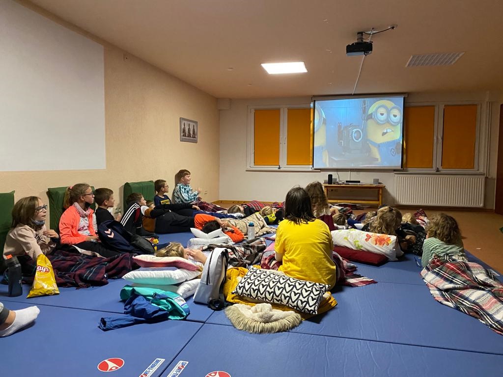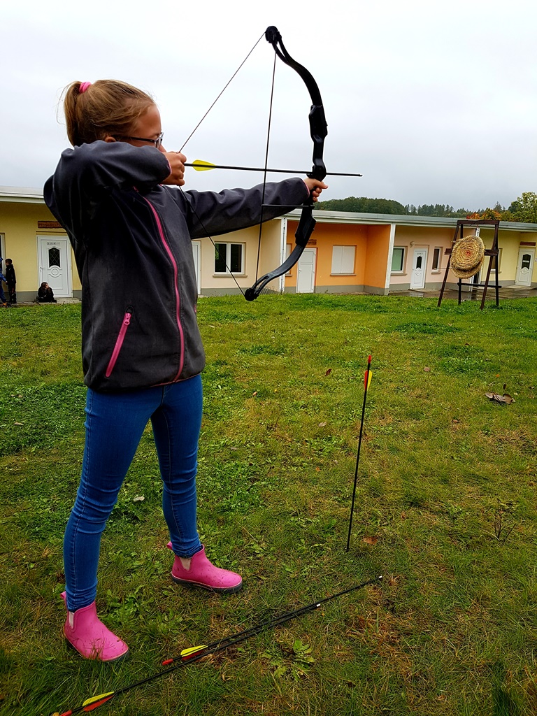 Am Dienstag haben wir Bogenschießen geübt, Minigolf gespielt und Kennenlernspiele gemacht. Abends gab es einen Film im Liegekino.