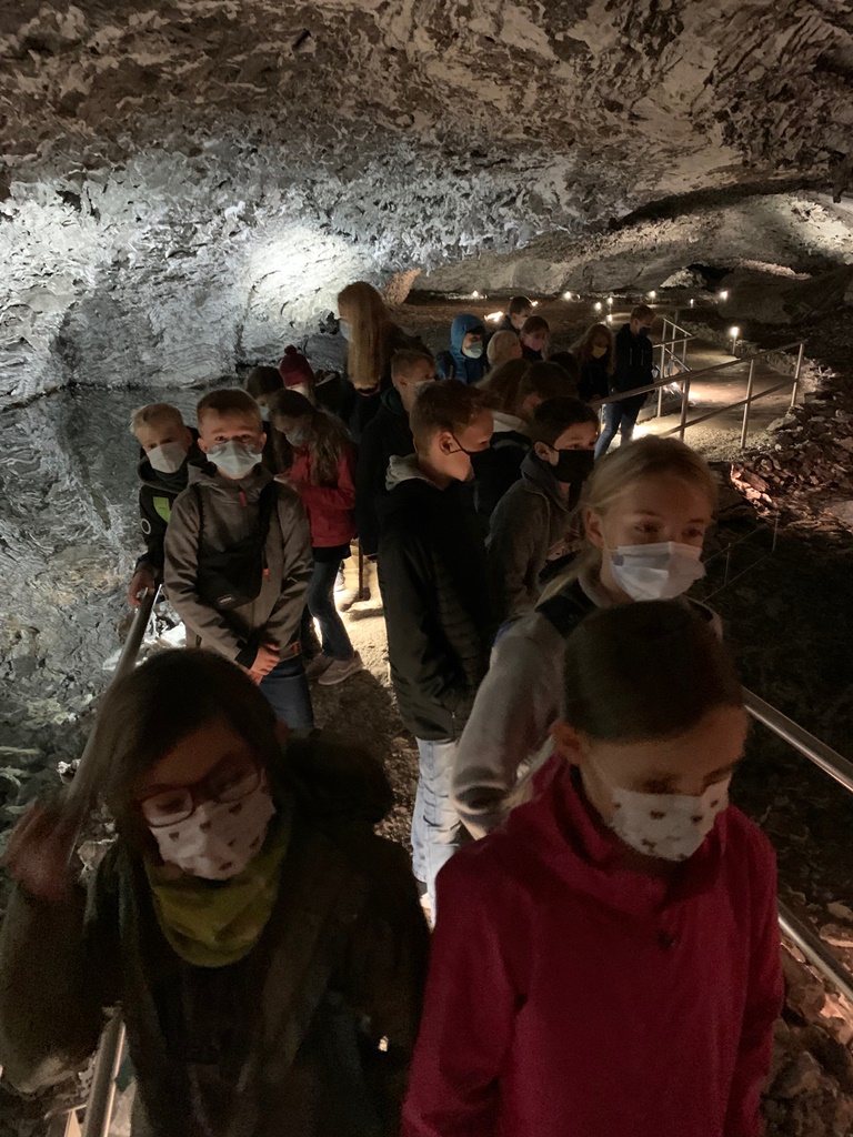 In der Höhle, die eine von zwei zugänglichen Anhydrithöhlen ist, erhielten wir eine Führung und konnten viele interessante Dinge, wie z.B. Alabasteraugen, sehen.