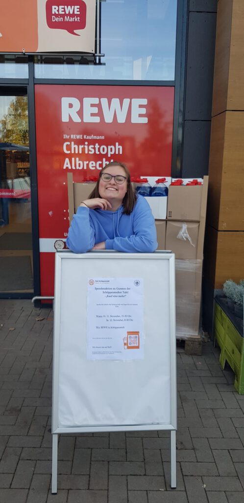 Am Freitag, den 11.11.2022 und am Samstag, den 12.11.2022, haben wir, Finnja Ziehe, Merle Reinke und Nira Winter, unser Soziales Projekt ,,Kauf eins mehr“ im Schöppenstedter Rewe durchgeführt. Ziel des Projektes war es, Lebensmittelspenden zu Gunsten der Schöppenstedter Tafel zu sammeln. Da die Tafeln momentan deutliche Engpässe aufgrund der Inflation und des Ukrainekriegs aufweisen, wollten wir einen kleinen Beitrag zur Unterstützung dieser leisten. Obwohl wir mit einigem Gegenwind der Menschen umgehen mussten, kamen auch sehr viele positive Resonanzen. Die meisten Menschen waren dem Projekt gegenüber sehr aufgeschlossen und haben uns und damit auch die Tafel mit zahlreichen Lebensmittelspenden unterstützt. Letztendlich kamen insgesamt Lebensmittel im Wert von über 2000 Euro zusammen. Die Tafel Schöppenstedt war vollkommen überwältigt und wahnsinnig dankbar für die Hilfe. In diesem Sinne möchten auch wir uns nochmal ganz herzlich bei allen Spenderinnen und Spendern, Herrn Albrecht vom Schöppenstedter Rewe und bei Frau Schäfer und Frau Eggers von der Schöppenstedter Tafel bedanken!