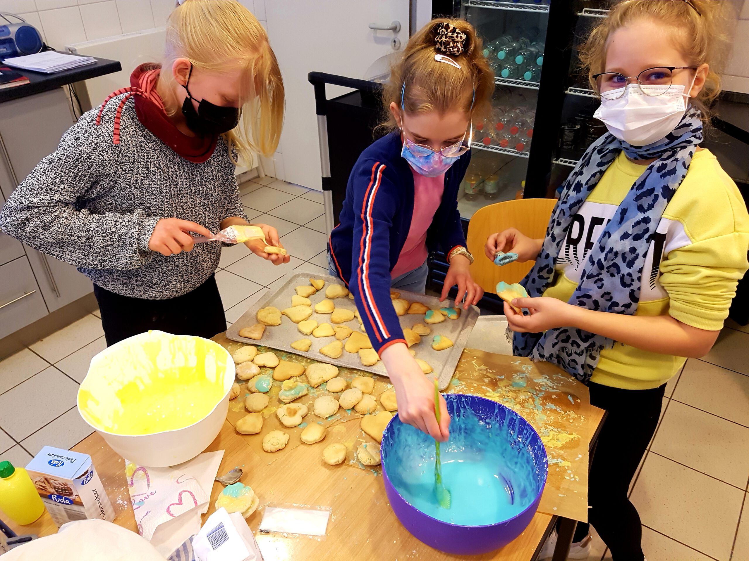 Am Freitag fand eine süße Aktion der Klasse 5d des Anna-Sophianeums statt. Unter dem Motto „Ein Herz für die Ukraine“ erfüllte ein leckerer Duft die Pausenhalle. Die Klasse 5d war von sich aus an ihren Klassenlehrer, Herrn Sascha Wedler, herangetreten, um ihm ihre Idee vorzustellen, eine Aktion zugunsten der ukrainischen Kriegsflüchtlinge auf die Beine zu stellen. Unterstützt von Frau Julia Ostermeyer, Frau Bettina Nabel und natürlich Herrn Wedler backte die Klasse mit großem Eifer frische Kekse und sammelte Spenden für den guten Zweck. Die ganze Schulgemeinschaft des Gymnasiums Anna-Sophianeum unterstütze die Aktion. Die herzförmigen Kekse in den ukrainischen Farben fanden reißenden Absatz und es kamen am Ende 575,- € zugunsten der ukrainischen Kriegsflüchtlinge in der Jugendherberge Schöningen zusammen. Die Schülerinnen und Schüler der Klasse 5d bedankt sich bei der Schulgemeinschaft des Anna-Sophianeum und der Essbar.“