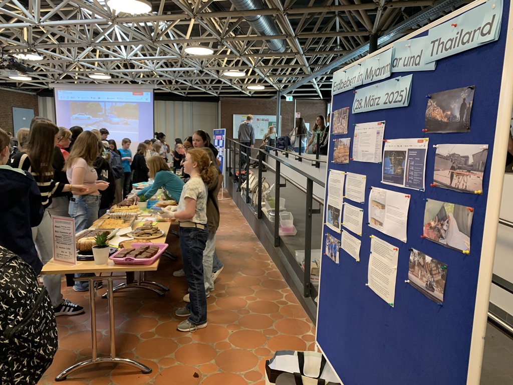 Am Dienstag, den 29.04.2025 fand am GY Anna-Sophianeum eine erfolgreiche Spendenaktion in Form des Verkaufs von Kuchen, bunten Tüten und Eis statt. Ziel war es, Geld für die Opfer des verheerenden Erdbebens vom 28.03.2025 in Myanmar und Thailand zu sammeln, um ihnen dringend benötigte Hilfe zukommen zu lassen.