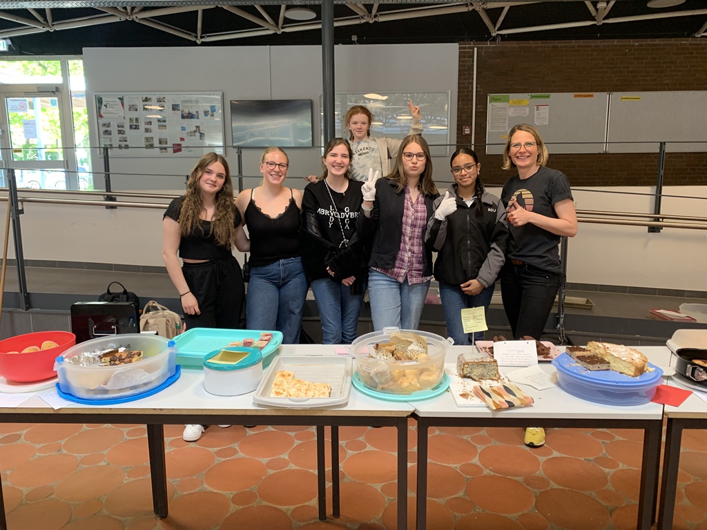 Bereits in den Wochen vor der Aktion organisierte das engagierte SuS-Team der Event-AG gemeinsam mit Frau Droz den Verkauf. Viele Schülerinnen und Schüler aus allen Jahrgängen beteiligten sich, indem sie selbst gebackene Kuchen, Muffins, Kekse und andere Leckereien mitbrachten. Die Auswahl war vielfältig und der Verkaufsstand in der Pausenhalle durchgehend gut besucht.