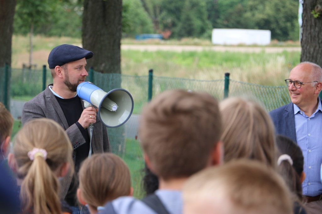 Schöningens Bürgermeister Malte Schneider und Schulleiter Stefan Krauß bei der Eröffnung