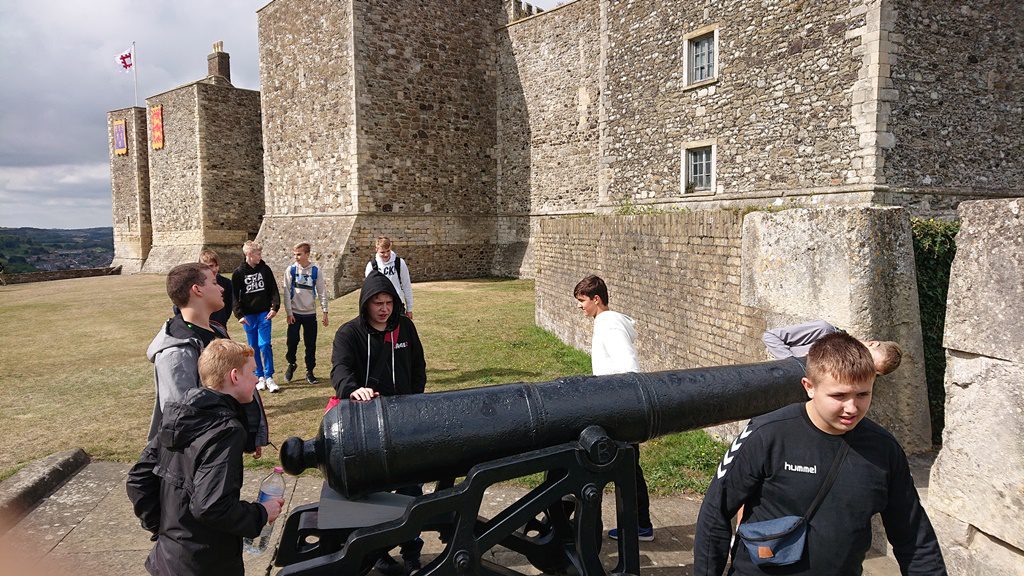 Trotz des Abschiedes stieg die Stimmung im Bus innerhalb einer Sekunde von null auf hundert. Es wurden Musikboxen angemacht und lautstark mitgesungen. Alle waren sehr gespannt auf England und freuten sich schon. Die Fahrt war dann allerdings doch länger als gedacht und irgendwann kehrte auch Stille ein. Am nächsten Morgen kamen wir an der Fähre an und unser Ziel rückte immer näher. Auf der Fähre konnten wir uns erstmal ein bisschen ausruhen, unsere Beine vertreten oder auch in einer größeren Runde einfach mal Karten spielen. Als dann die White Cliffs of Dover zu sehen waren, kamen alle raus um sich die wunderschöne Landschaft anzuschauen. Ein paar Schüler wurden von der Landschaft so inspiriert, das sie anfingen zu singen und eine Art kleines „Riff Off“ veranstalteten. In Dover angekommen ging es dann zu einer Besichtigung des „Dover Castles“. Wir schauten uns zum Beispiel die unterirdischen „Wartime Tunnels“ an, die mehr als 15 Meter unter der Erde sind. Keine Sorge, alle haben es letztendlich irgendwie dann doch noch raus geschaft. Danach haben wir uns auch endlich auf den Weg nach Eastbourne gemacht. Die Fahrt dauerte nochmal über zwei Stunden. Nach fünf Minuten im Bus schiefen dann abermals die meisten Schüler ein und es wurde wieder still. Wir waren etwas früher als geplant in Eastbourne und durften deshalb noch das Shoppingcenter erkunden. Der Moment des Treffens mit den Gastfamilien rückte immer näher und der Puls der Schüler wollte sich einfach nicht mehr beruhigen. Nach und nach wurden die Schüler abgeholt und die Aufregung stieg. Irgendwann war dann auch meine Gastfamilie dort und sie waren wirklich sehr nett. Alle schrieben sofort miteinander über ihre Familien und waren sehr begeistert. Manche gingen abends noch die anderen besuchen, aber manche blieben auch einfach in ihren Gastfamilien, weil sie sich dort so wohl fühlten. (Victoria von Wantoch)