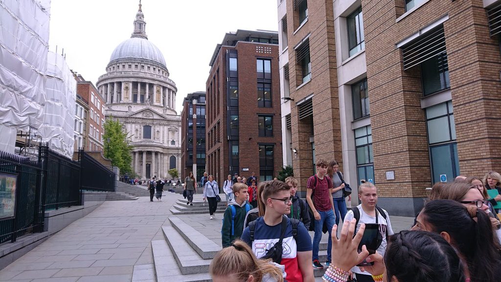 Heute Morgen mussten wir schon früher raus und Verspätungen konnten wir uns nicht leisten. Wir mussten den Zug um 9.00 Uhr zur London Victoria Station kriegen. Von dort aus ging es mit der Tube weiter. Wir kamen auf dem Weg zum Globe Theatre an der St. Paul’s Cathedral vorbei, über die Mellennium Bridge und warfen einen Blick ins Tate Modern, eins der vier Museen der Tate Gallery. In Shakespeare’s Globe Theatre wurden wir durch die Nachbauten des ersten Globe Theatre geführt und haben einen lebhaften Workshop zur Komödie The Midsummernight’s Dream und zu dem Drama Romeo and Juliet gemacht.