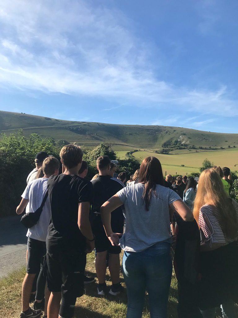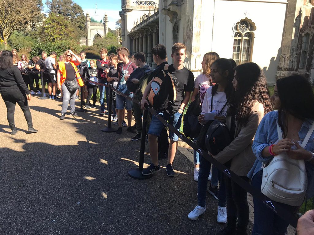 Am 15. September war, wie schon am Tag zuvor, ziemlich gutes Wetter, welches perfekt für den Tag war. Angefangen hat der Tag damit, dass wir nach Wilmington gefahren sind, um dort den Long Man of Wilmington zu sehen (eine in Berg eingeritzte Figur). Jedoch war diese mit Gras überwachsen, sodass man sie nicht allzu gut sehen konnte. Direkt danach besuchten wir den Friedhof in Wilmington, auf dem ein 1600 Jahre alter Baum steht, und besichtigten auch die Kirche dort. Anschließend ging es mit dem Bus, weiter nach Brighton. Zuerst haben wir dort den „Royal Pavilion“ besucht, bei denen wir von Audio Guides geführt wurden. Nach dem Besuch hatten wir dann 2 Stunden Freizeit in Brighton, in denen wir z.B. essen oder einkaufen waren. Zwischen 5 und 6 Uhr abends sind wir auch wieder in Eastbourne angekommen und hatten Abendessen mit den Gastfamilien. Das war unser Tag :).