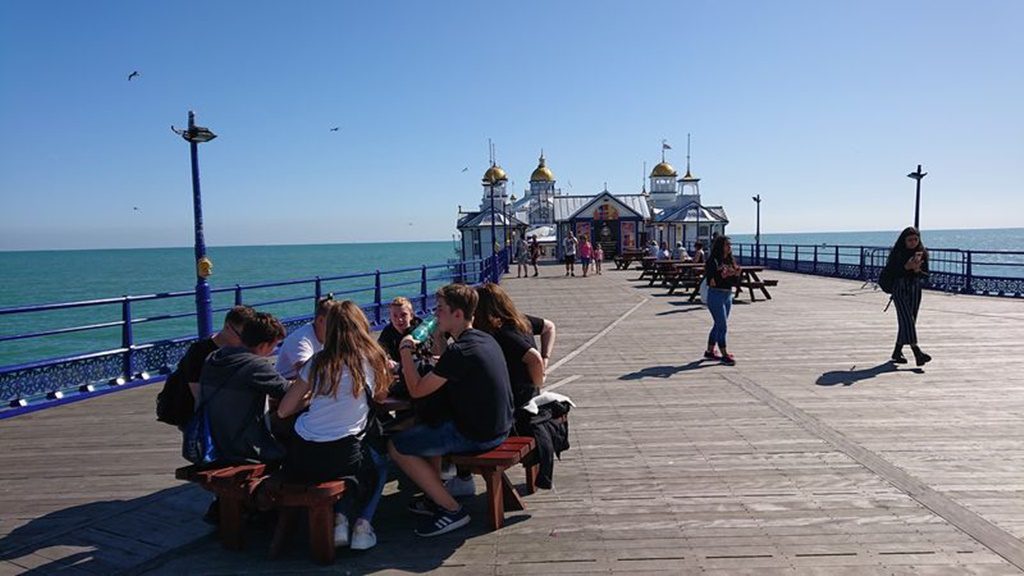 Unser erster Tag in Eastbourne. Am frühen Morgen haben wir uns am Pick Up Point getroffen und sind dann anschließend mit voller Energie zu den White Clips gefahren.Wir waren sehr angespannt,da dort schon viele Menschen Suizid begangen haben.Nachdem wir oben angekommen sind,sind wir zu dem Beachy Head gegangen.Er ist 162 Meter hoch und somit der höchste Kreidefelsen in Großbritannien.Nach vielen Bildern,sind wir dann einen sehr steilen und rutschigen Abgang heruntergegangen und man musste sich echt konzentrieren wo man hintritt und das man nicht ins laufen kommt.Nach diesem sehr schweren und anstrengenden Weg haben wir unten eine Pause gemacht und haben dann die schöne Aussicht über Eastbourne genossen.Danach sind wir zum Eastbourne Beach gegangen und haben ein wenig am Strand entspannt,wo manche auch durch die Wellen nass geworden sind.Zum Pier hatten wir dann einen relativ längeren Weg vor uns.Als wir dann am Pier angekommen waren,haben uns die Lehrer eine Stadtrally gegeben,die auch mit unserer langen Freizeit verbunden war und die wir dann nach und nach erledigt haben.Nachdem viele die Rally erledigt hatten,sind sie zum Pier,zum Strand oder in die Stadt gegangen und haben sich entspannt,etwas gegessen oder die Stadt erkundet.Nach diesem aufregenden Tag haben sich manche am Abend noch getroffen oder sind früh schlafen gegangen.