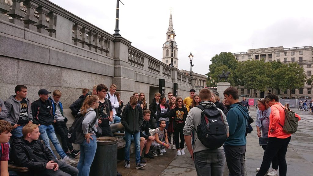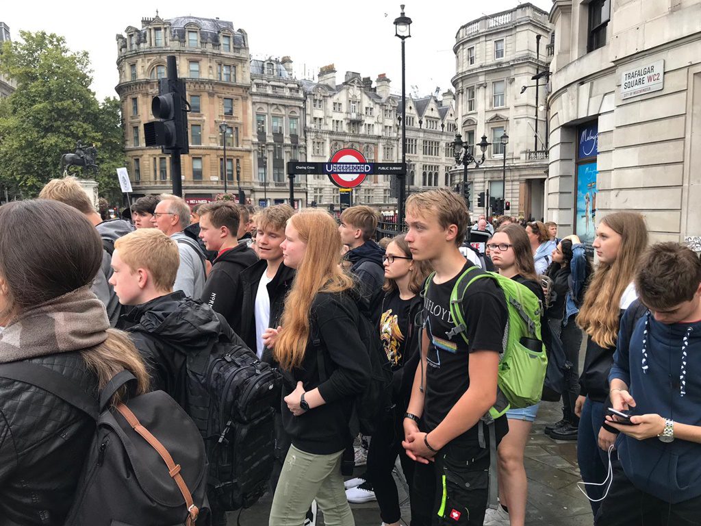 Mit der Tube sind wir dann Richtung Big Ben und London Eye gefahren und sind an den Houses of Parliament und an der Westminster Abbey vorbei gegangen. Als nächstes sind wir zum Trafalgar Square gekommen und haben uns unter anderem mit Lord Nelson beschäftigt, einem Kapitän und Krieger aus dem 18. Jahrhundert, der unter anderem gegen Napoleon kämpfte und gewann. Unsere letzte Station an diesem Tag war dann Piccadilly Circus. Dort hatten wir wieder etwas Freizeit, in der wir in den verschiedensten Läden, wie dem M&M’s Shop oder dem HardRockCafé, gestöbert und auch das eine oder andere Souvenir mitgenommen haben.