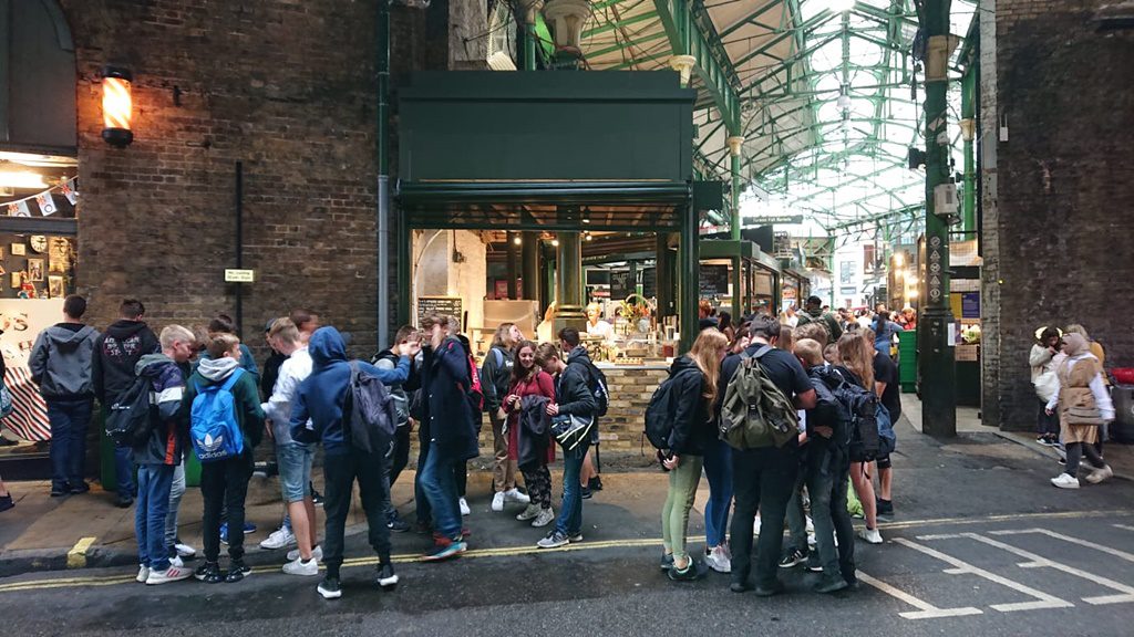Nach dem Workshop haben wir auf einem Foodmarkt die Gelegenheit genutzt um etwas zu essen und uns einfach die verschiedenen Stände anzusehen. Nach diesem Stop ging es weiter an der Themse entlang zur Tower Bridge. Nachdem wir diese überquert hatten, konnten wir einen genaueren Blick auf den Tower of London werfen.
