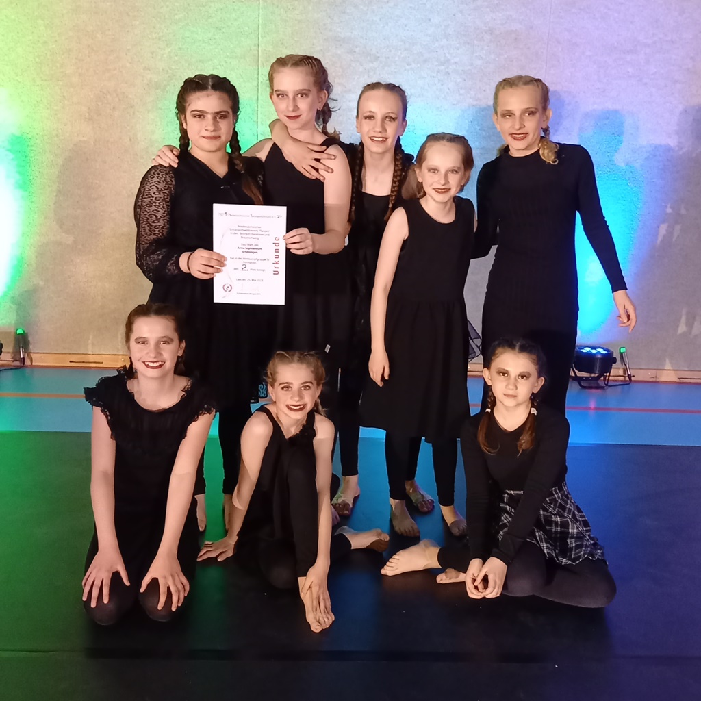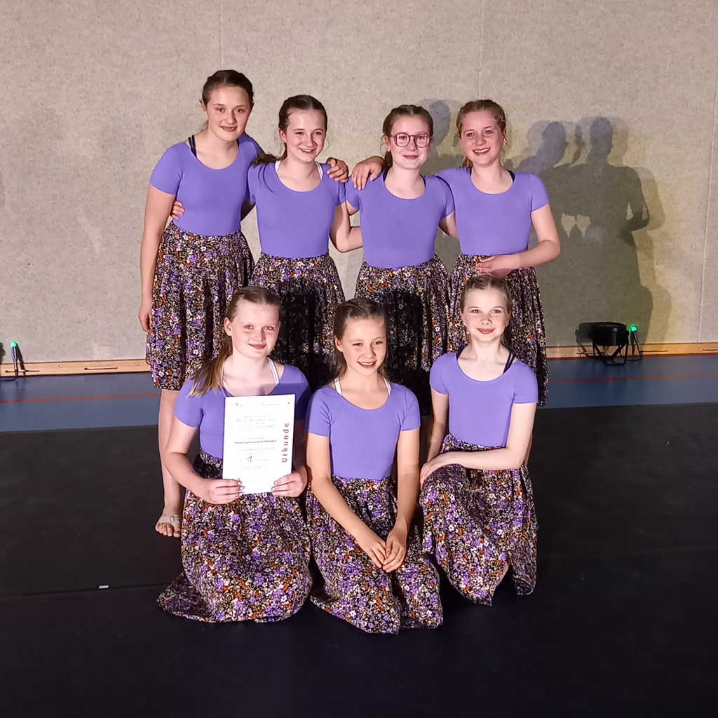 Am 25. Mai 2023 fand an der Albert-Einstein-Schule in Laatzen der „Niedersächsische Schulsportwettbewerb ‚Tanzen‘ für die Regionen Braunschweig und Hannover“ statt. Aufgrund unserer Kooperation mit dem TC Schöningen, in dessen Tanzsportabteilung viele unserer Schülerinnen beheimatet sind, konnten wir neben unserer Tanz-AG noch zwei weitere Formationen für diesen Wettbewerb melden. So machten sich am 25. Mai 27 tanzbegeisterte Schülerinnen unserer Schule mit ihrer Trainerin Bernadette Sievert vom TC Schöningen, Frau Gennrich und Frau Hansmeier auf den Weg in Richtung Hannover. Die Fahrzeit nutzten die aufgeregten Tänzerinnen, um Haare zu flechten und sich für den Auftritt zu schminken, und die erfahrenen Tänzerinnen versuchten, die Neulinge etwas zu beruhigen. Pünktlich zum Einlauf der Formationen kamen wir am Veranstaltungsort an. Die Tanz-AG, die sich zu Schuljahresbeginn neu formiert und in Laatzen ihren ersten öffentlichen Auftritt hatte, machte in der WK VI den Auftakt und kam direkt ins große Finale. In der WK I bewiesen unsere Schülerinnen, die auch Monumentos tanzen, ihr Können und die Tänzerinnen von Bisou traten bei den Small Groups an. Nach einem erfolgreichen zweiten Durchlauf stand das Ergebnis der Wertungsrichter fest und Überraschung und Freude waren groß: Unsere Tanz-AG erlangte bei ihrer allerersten Wettbewerbsteilnahme einen tollen 2. Platz, unsere Schülerinnen von Bisou und Moumentos waren noch erfolgreicher und konnten jeweils eine Urkunde über den 1. Platz in Empfang nehmen. Aufgrund ihrer Platzierung können die „Großen“ am 17. Juni am Bundeswettbewerb in Maintal teilnehmen. Herzlichen Glückwunsch an unsere erfolgreichen Tänzerinnen und ein herzliches Dankeschön an die Trainerinnen für ihren Einsatz.