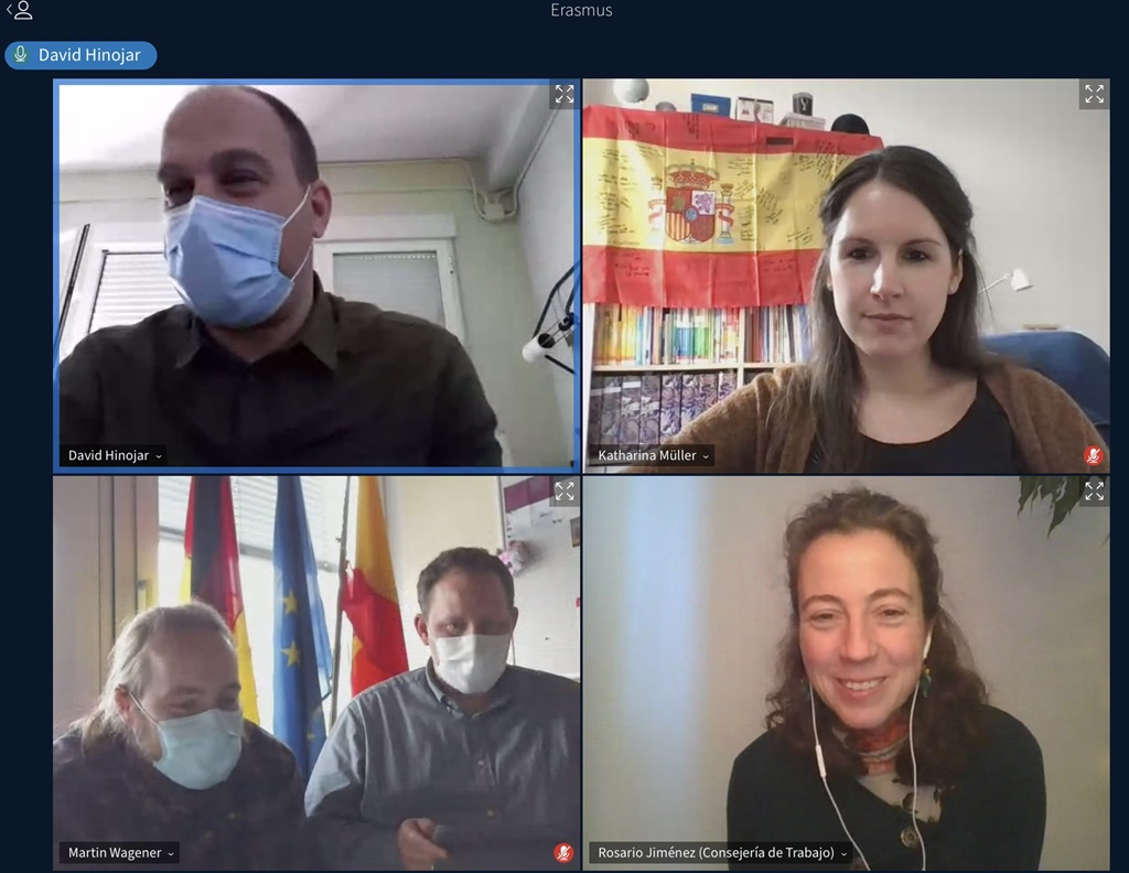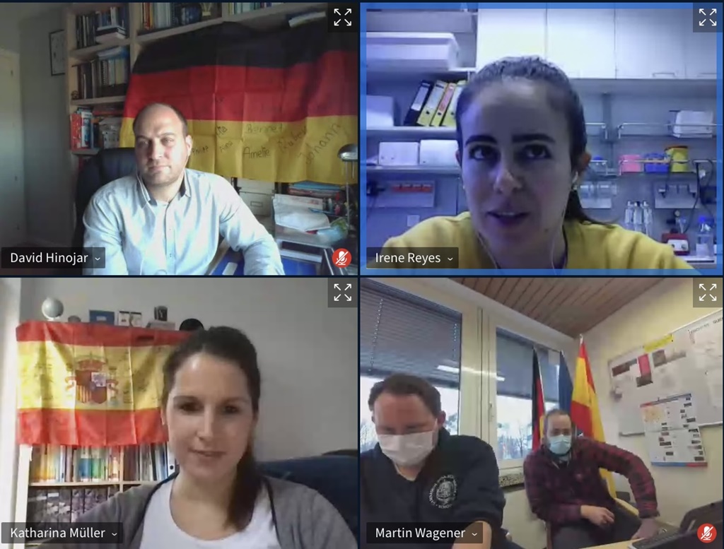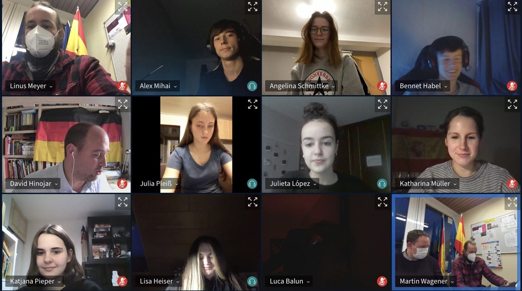 Fast ein Jahr später und noch immer im „Coronawürgegriff“ haben wir das Projekt nun virtuell durchgeführt. Dazwischen lagen Monate des Hoffens, dass der Austausch eventuell doch noch real stattfinden könnte. Spätestens seit dem Ende der Sommerferien wurde uns jedoch deutlich, dass der Rückbesuch nur virtuell stattfinden kann. Erschwerend kam hinzu, dass Corona bedingt einige Projektpartner die Zusammenarbeit nicht mehr gewährleisten konnten, sodass wir auch noch teilweise neu planen mussten. Am Ende stand ein auf drei Tage verteiltes Projekt, das vollständig via Videokonferenzschaltung durchgeführt wurde. Nach Absprache mit der deutschen und spanischen Schulleitung einigten wir uns auf Ende Januar für die Umsetzung.