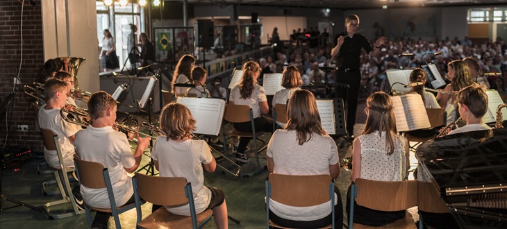 Neben dem musikalischen Programm wäre auch das diesjährige Sommerkonzertkonzert ohne die vielen Helfenden im Hintergrund nicht möglich gewesen. Ein großer Dank geht an die Veranstaltungs-AG, den Schulsanitätsdienst, die Essbar mit ihrem Catering-Team, die Instrumentallehrkräfte der Kreismusikschule, die als wichtige Kooperationspartner unsere Schülerinnen und Schüler fachkundig begleiten sowie in besonderer Weise unsere Ensembleleiterinnen und -leiter, die unsere Schülerinnen und Schüler über viele Schuljahre hinweg motivieren und fördern. Sie alle tragen dazu bei, dass solch ein Konzert in professioneller und fröhlicher Atmosphäre stattfinden kann – mit Routine, Flexibilität und vor allem: echtem Teamgeist.