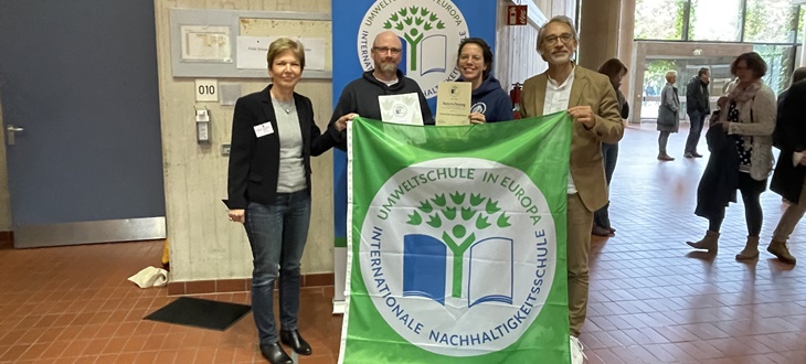 Am 05.10.2022 wurde das Gymnasium Anna-Sophianeum zum nunmehr neunten Mal in Folge mit dem Titel „Umweltschule in Europa“ für sein Engagement im Umwelt- und Klimaschutz ausgezeichnet. In voller Vorfreude reisten deshalb Frau Anspach-Wolf und Herr Kiehne vom Gymnasium Anna-Sophianeum zur Georg-August-Universität nach Göttingen, wo die diesjährige Auszeichnungsveranstaltung stattfand. Vor Ort erwartete die beiden ein kleines Festprogramm, in dessen Rahmen ausgewählte Schulen ihre Arbeitsergebnisse vorstellten. Im Vordergrund des zurückliegenden dreijährigen Projektzeitraumes standen zwei große Handlungsfelder: Zum einen wurde der seit 2012 existierende Schulwald des Anna-Sophianeum auf die vierfache Größe von nunmehr 2 Hektar zu einem außerschulischen Lernort erweitert, zum anderen entwickelte eine Schülergruppe im Rahmen ihres sozialen Projektes einen regionalen Ernährungskompass zur Förderung des Tier- und Umweltschutzes. „Die Erweiterung des Schulwaldes hat sich zu einem regelrechten Leuchtturmprojekt unserer Schule entwickelt, von den rund 80000 Euro Fördermitteln der LEADER-Region Grünes Band im Landkreis Helmstedt und der Bürgerstiftung Ostfahlen konnten beispielsweise überdachte Sitzgruppen, eine Forscherstation in Blockbohlenbauweise, Schulfahrräder, Materialien für eine schuleigene Imkerei und vieles mehr finanziert werden. Auf diese Weise wird auch in Zukunft die Umweltbildung für eine nachhaltige Entwicklung an unserer Schule einen hohen Stellenwert haben“, so Ulrike Anspach-Wolf, Koordinatorin des Schulwaldprojektes am Anna-Sophianeum.