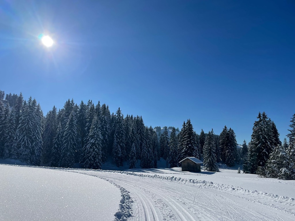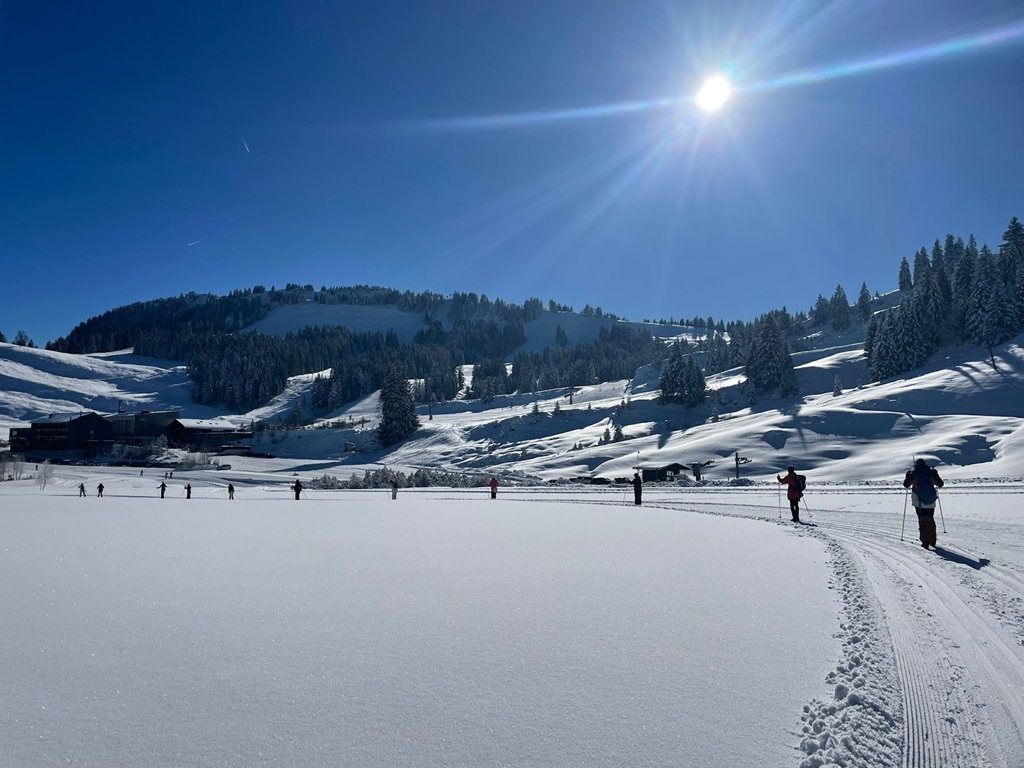 Die Langläufer nutzten zu Beginn die Loipen rund um Kalzhofen, in der Nähe der Hündlebahn, bevor am dritten Tag das Skigebiet Hochhäderich/Österreich mit seinem Loipennetz erkundet wurde. Ein besonderes Highlight war die länderübergreifende Tour nach von Österreich zurück nach Steibis.