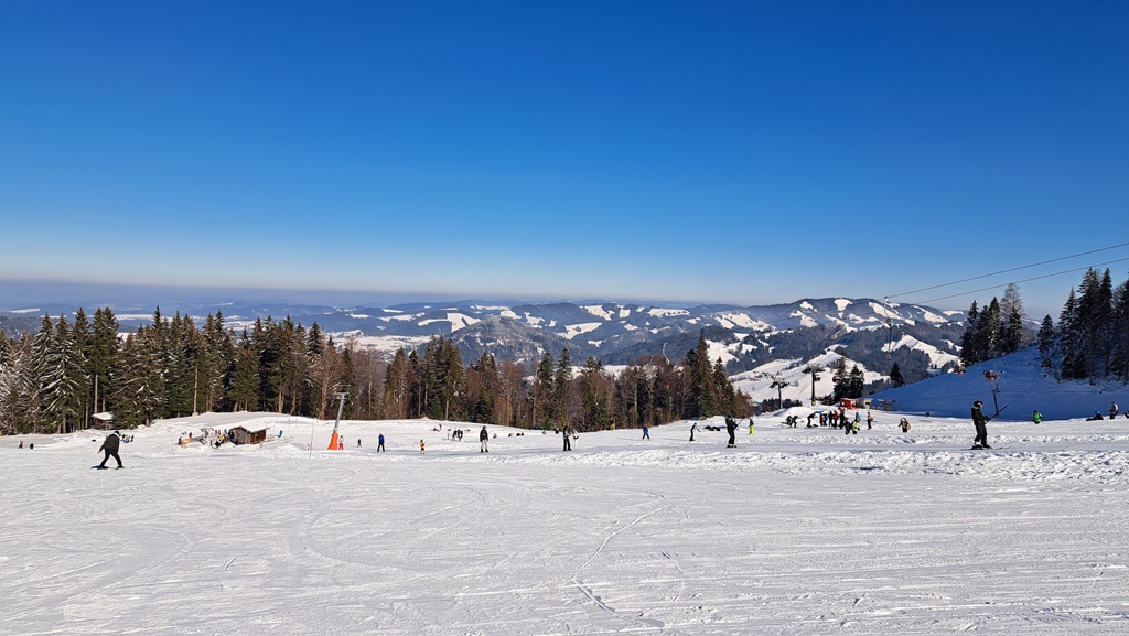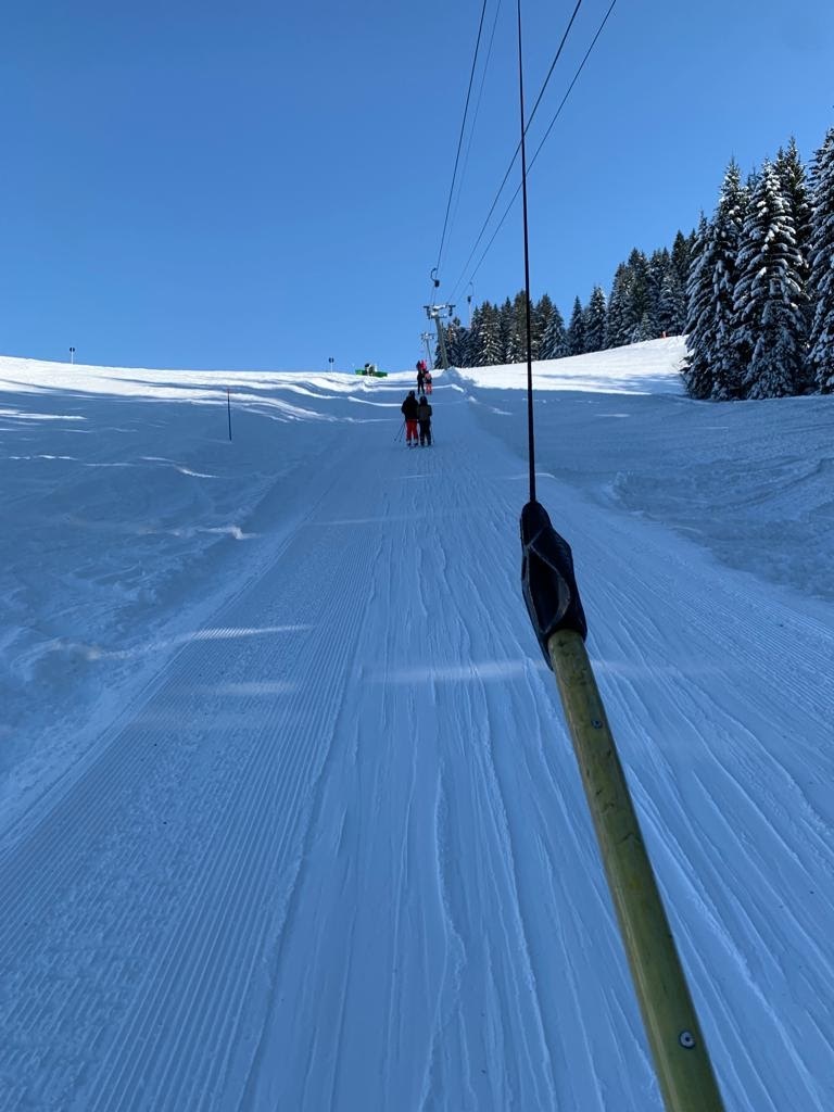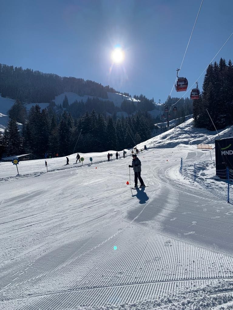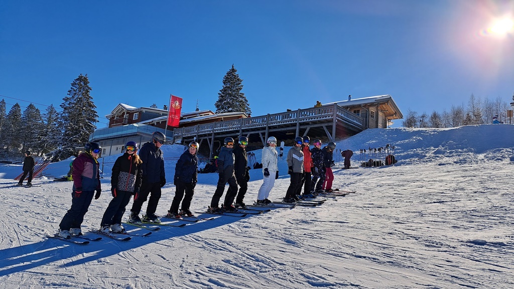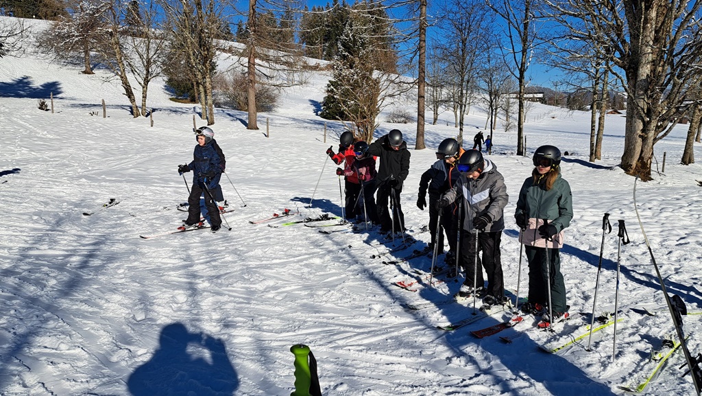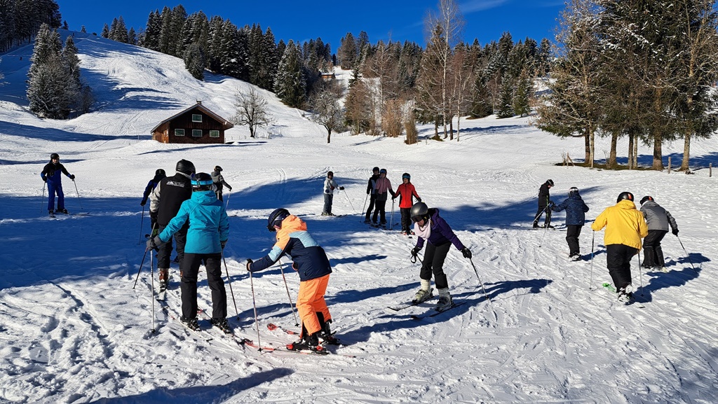 Während die Fortgeschrittenen bereits am ersten Skitag sämtliche Pisten des Skigebietes befuhren, standen für die Anfänger die ersten Lernschritte auf dem Programm: In der Ebene und bergauf bewegen, parallel bergab fahren und bremsen, (Pflug-) Kurven fahren. Die Lernfortschritte waren so erfreulich, dass alle Gruppen im Verlauf der Woche souverän die Pisten um die Alpe Hohenegg meisterten.