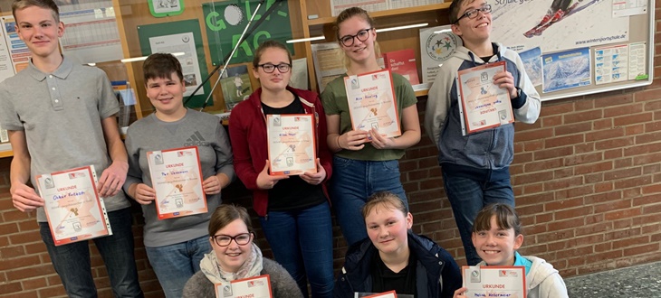 Die Urkunden und Anstecknadeln wurden am letzten Schultag vor den Weihnachtsferien vom Jugendwart des Partnerclubs, Jürgen Grau (Golf- und Land-Club St. Lorenz in Schöningen), an die Prüfungsteilnehmer überreicht.