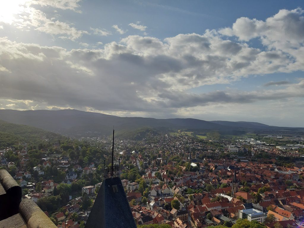 Der Mittwoch startete ganz entspannt mit der Erarbeitung von Klassenregeln, die uns nun auf einem Plakat jeden Tag daran erinnern, wie wir uns als Klasse verhalten, um die Hürden der Schulzeit gemeinsam zu meistern. Die Entspannung sollte aber nicht lange anhalten. So brachen wir kurz vor Mittag auf in Richtung Märchenwanderweg. Auf dieser rund 2 km langen Strecke riefen wir uns wieder diverse Märchen der Gebrüder Grimm in Erinnerung und rätselten dazu was das Zeug hielt. Auf dem Arme Leute Berg angekommen erhielten wir für die Lösung der Rätsel sogar eine Medaille, die wir am Rapunzelturm/ Kaiserturm in Empfang nahmen. Zu diesem Zeitpunkt gingen wir davon aus, dass das Wanderpensum damit für den Tag erreicht worden sei, doch weit gefehlt: Der größte Teil der Wanderung führte uns durch Wald und Wiesen, ein Skigebiet und vorbei an einigen Skisprungschanzen wieder in den Ort zurück, von wo aus wir jedoch den nächsten Anstieg zum Schloss Wernigerode in Angriff nahmen. Dort wurden wir durch die ehemaligen Wohnräume von Fürst Otto und Fürstin Anna geführt wurden. Auch ein Abstecher auf den Turm des Schlosses stand auf dem Programm. Hier begegnete uns in einer Truhe nach 12maligem Läuten der Glocke das aus dem gleichnamigen Film bekannte „Kleine Gespenst“. Den Schrecken im Nacken machten wir uns wieder an den Abstieg und auf den Rückweg zur Jugendherberge. Nach dem Abendessen packten wir schonmal unsere sieben Sachen zusammen, spielten dann eine Runde „Werwolf“ und freuten uns zu diesem Zeitpunkt doch schon wieder auf unser gemütliches Bett in gewohnter Umgebung.