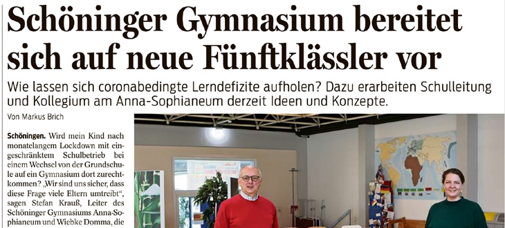 Am 04. März berichtete die Braunschweiger Zeitung über die Planungen und Konzepte des Anna-Sophianeum coronabedingte Lerndefizite aufzuholen: