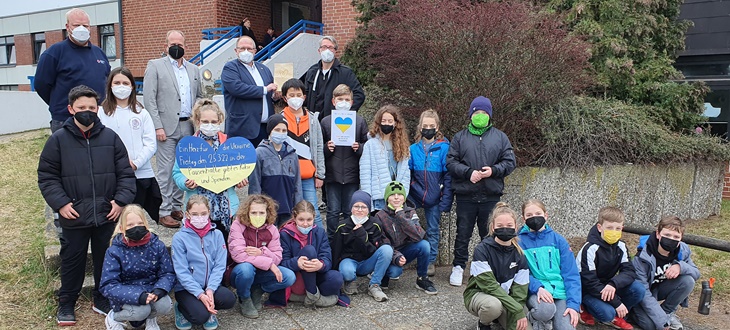 Am Freitag fand eine süße Aktion der Klasse 5d des Anna-Sophianeums statt. Unter dem Motto „Ein Herz für die Ukraine“ erfüllte ein leckerer Duft die Pausenhalle. Die Klasse 5d war von sich aus an ihren Klassenlehrer, Herrn Sascha Wedler, herangetreten, um ihm ihre Idee vorzustellen, eine Aktion zugunsten der ukrainischen Kriegsflüchtlinge auf die Beine zu stellen. Unterstützt von Frau Julia Ostermeyer, Frau Bettina Nabel und natürlich Herrn Wedler backte die Klasse mit großem Eifer frische Kekse und sammelte Spenden für den guten Zweck. Die ganze Schulgemeinschaft des Gymnasiums Anna-Sophianeum unterstütze die Aktion. Die herzförmigen Kekse in den ukrainischen Farben fanden reißenden Absatz und es kamen am Ende 575,- € zugunsten der ukrainischen Kriegsflüchtlinge in der Jugendherberge Schöningen zusammen. Die Schülerinnen und Schüler der Klasse 5d bedankt sich bei der Schulgemeinschaft des Anna-Sophianeum und der Essbar.“
